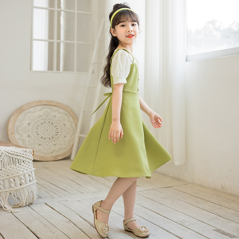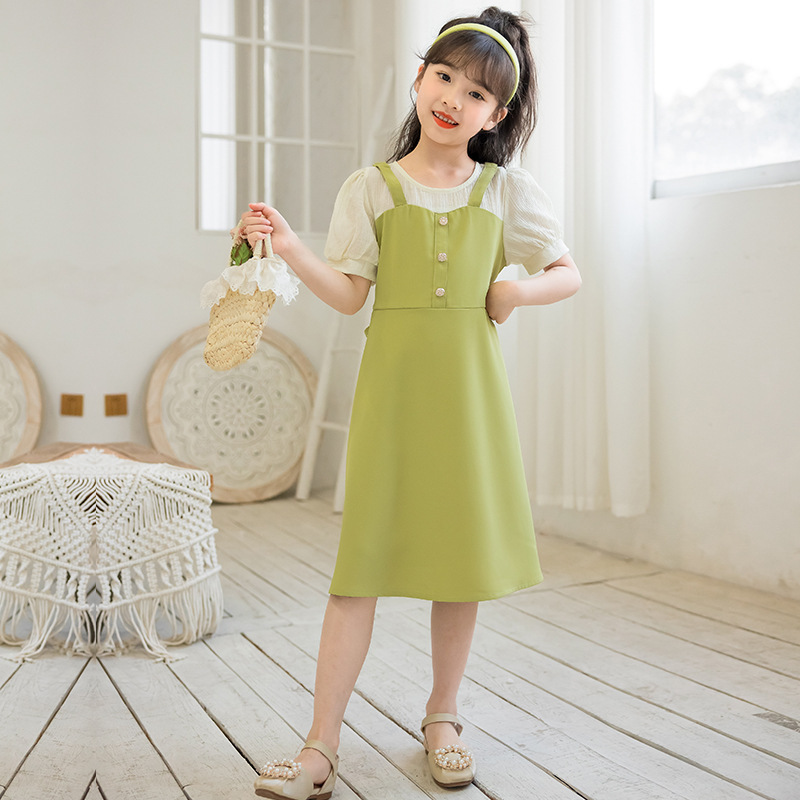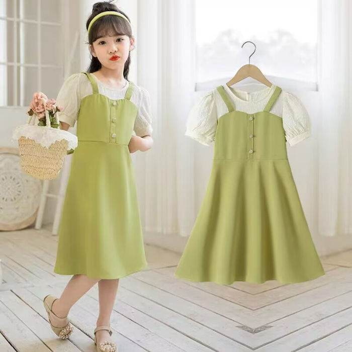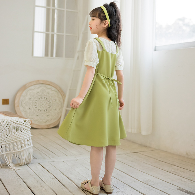 女童夏装连衣裙新款中大童洋气背带公主裙儿童女孩假两件吊带裙子