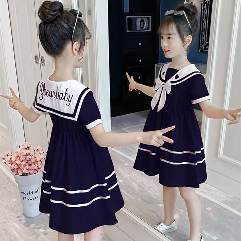 女童连衣裙夏季新款儿童韩版洋气海军领裙子中大儿童装网红公主裙