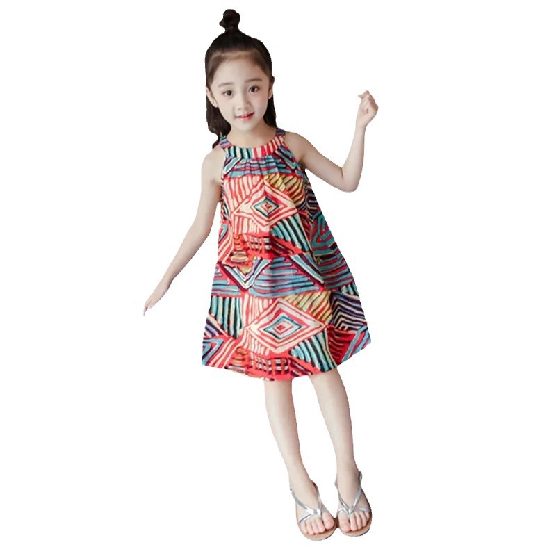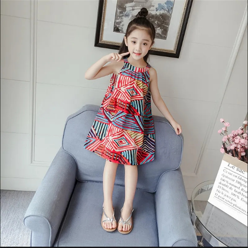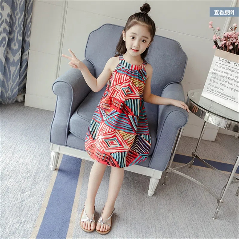 女童连衣裙夏装学生吊带裙韩版背心裙女孩公主裙无袖棉绸碎花裙子