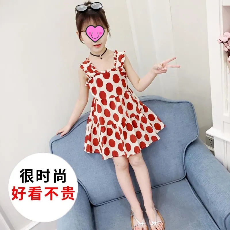 女童连衣裙夏季年新款儿童超洋气波点公主裙小女孩宝宝吊带裙