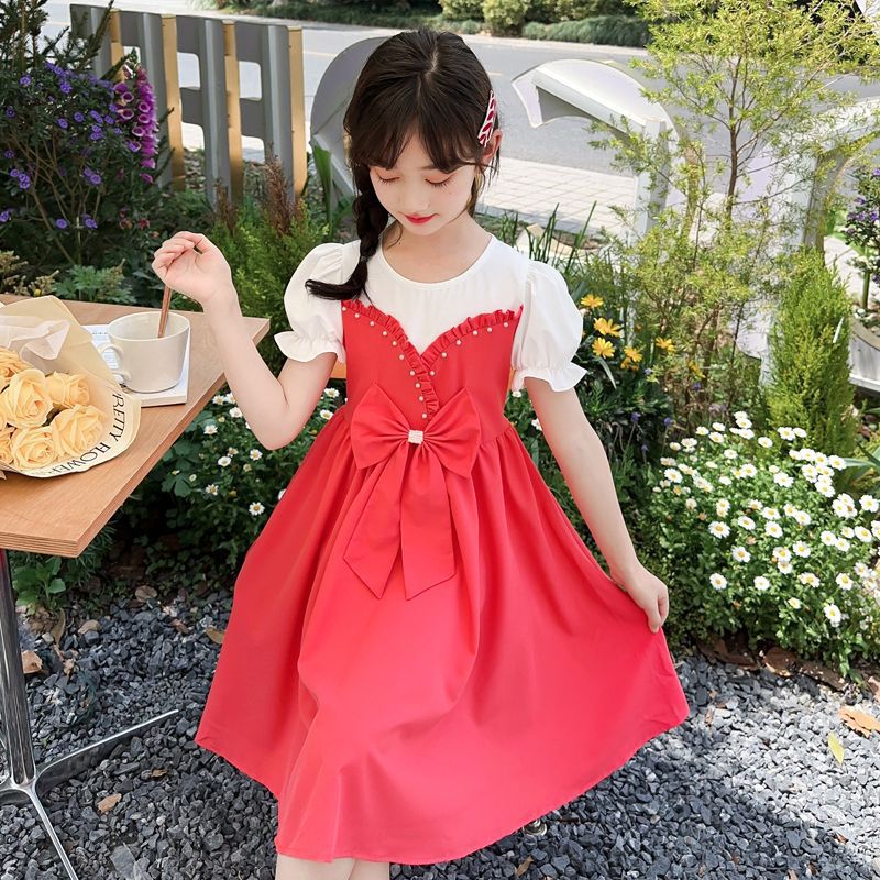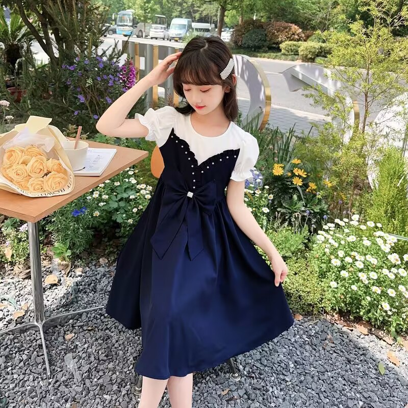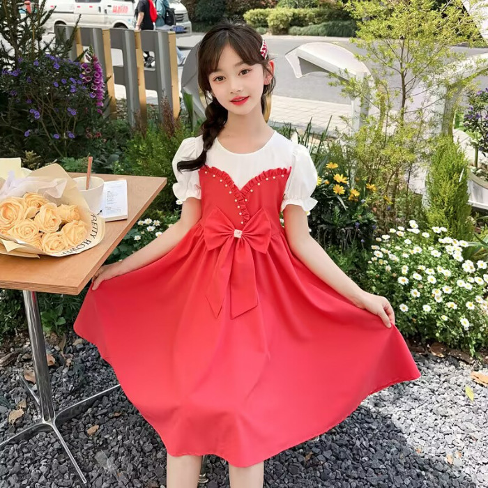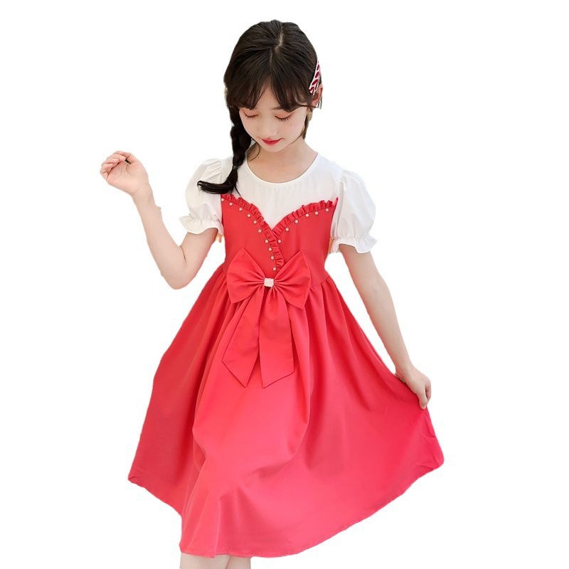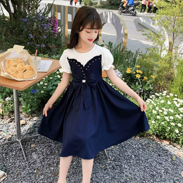 女童连衣裙夏装中大童韩版纯色个性假两件夏季新款休闲公主连衣裙