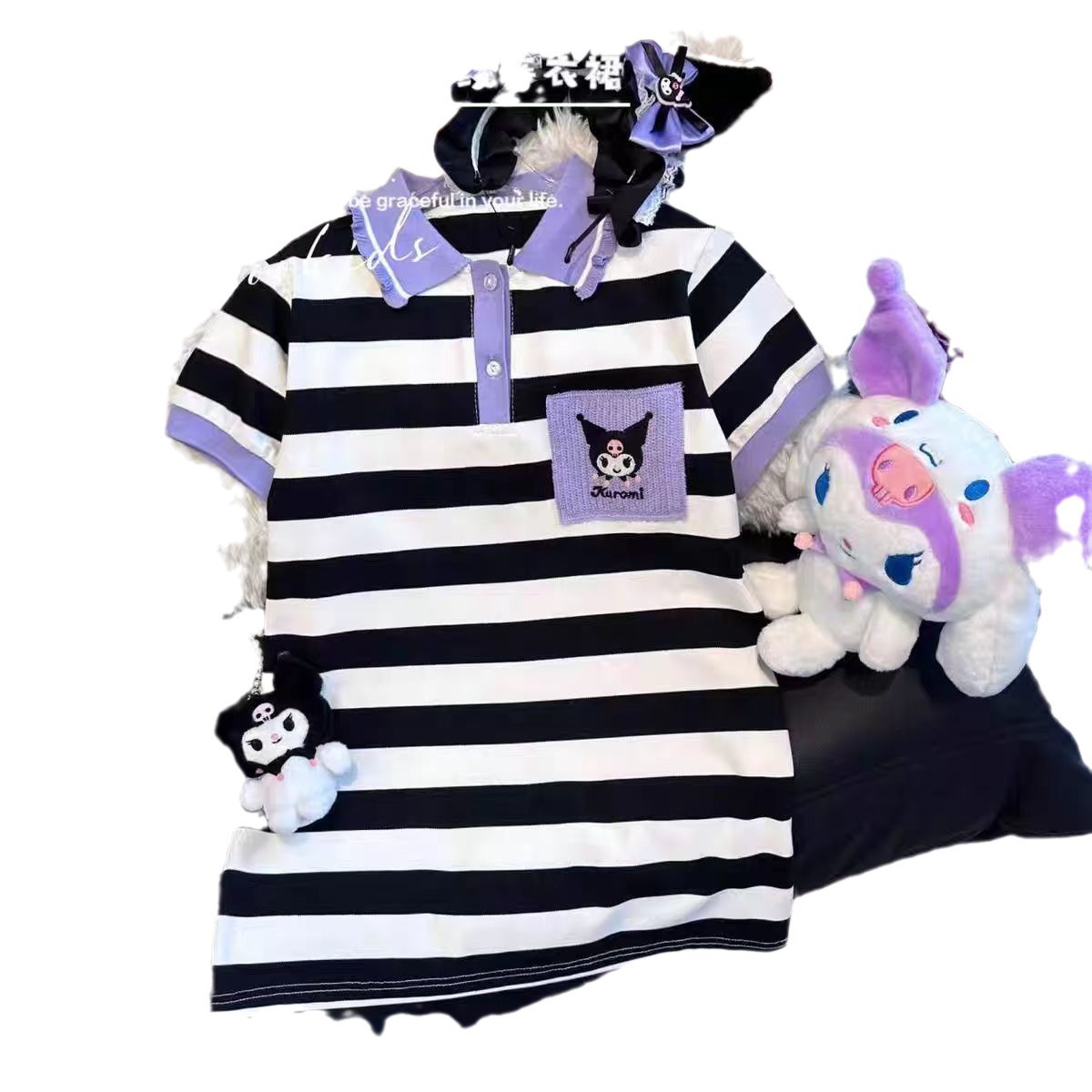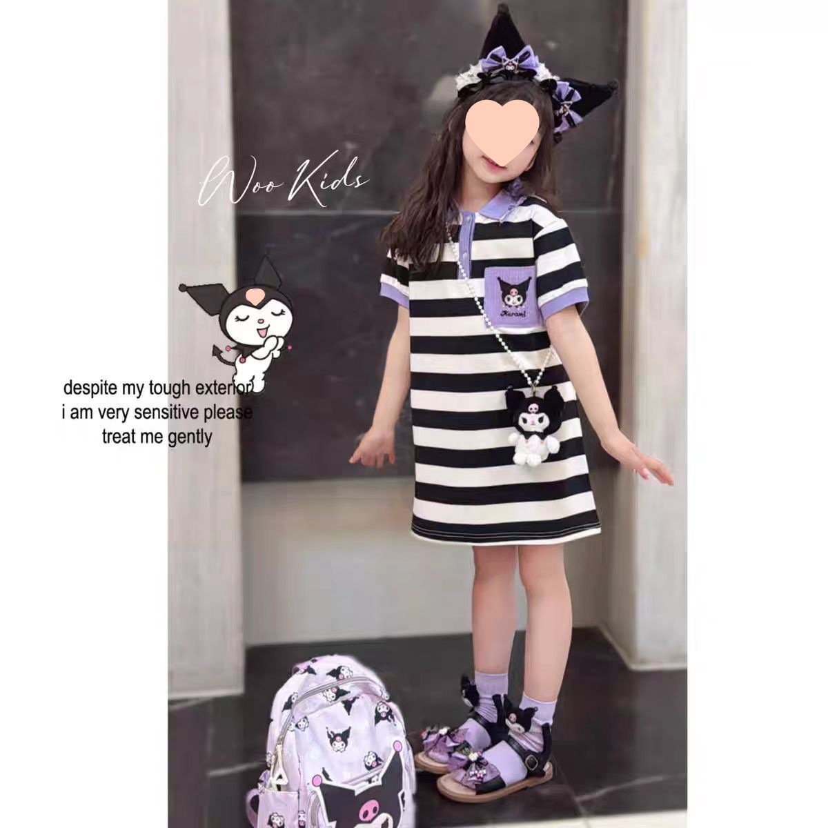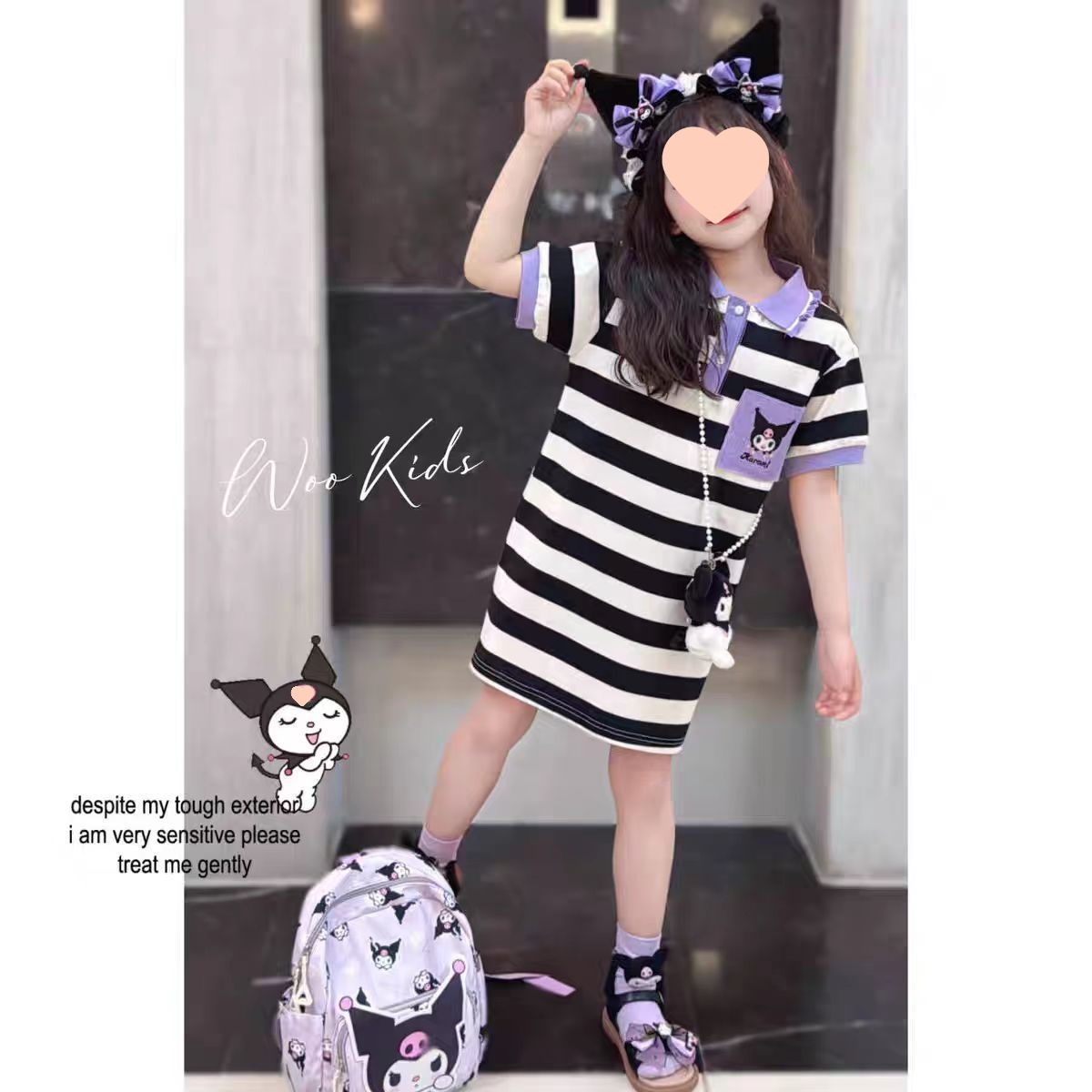 女童韩版夏装短袖卡通连衣裙中大儿童新款时尚翻领百搭A字裙.