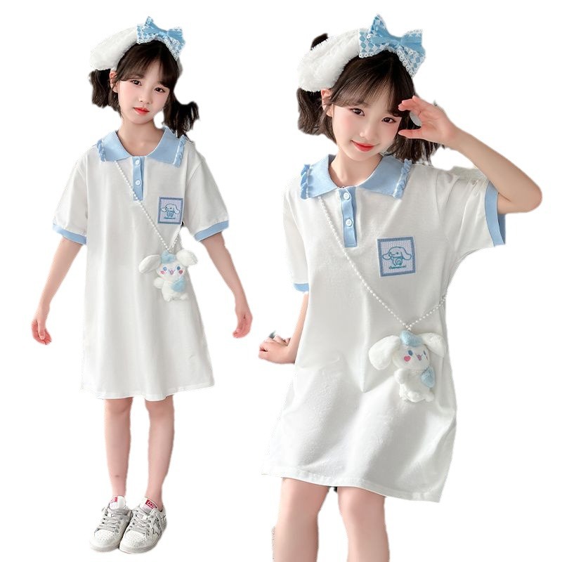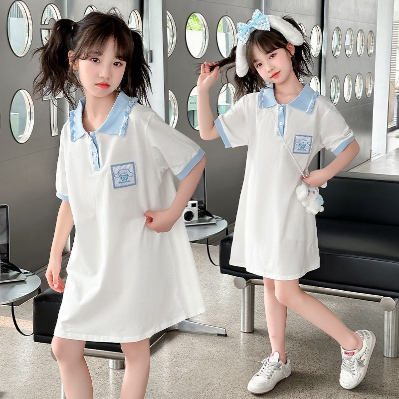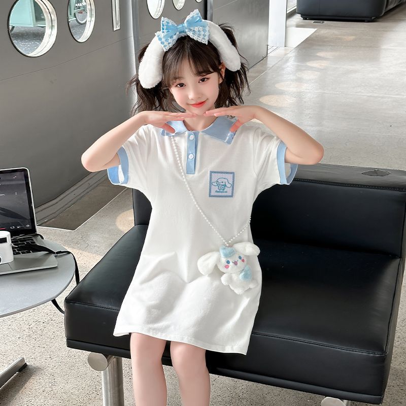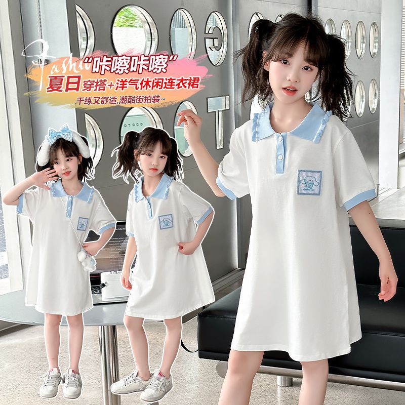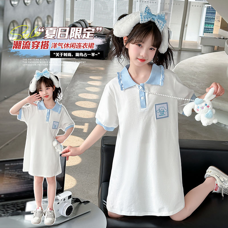 女童韩版夏装短袖连衣裙中大童新款洋气卡通时髦卡通公主裙潮