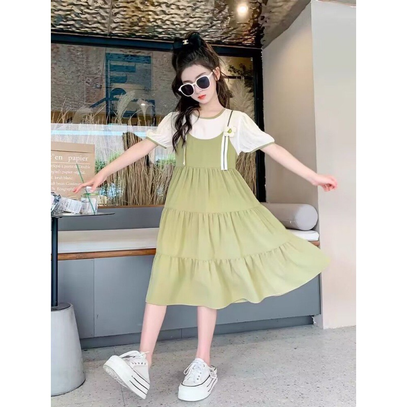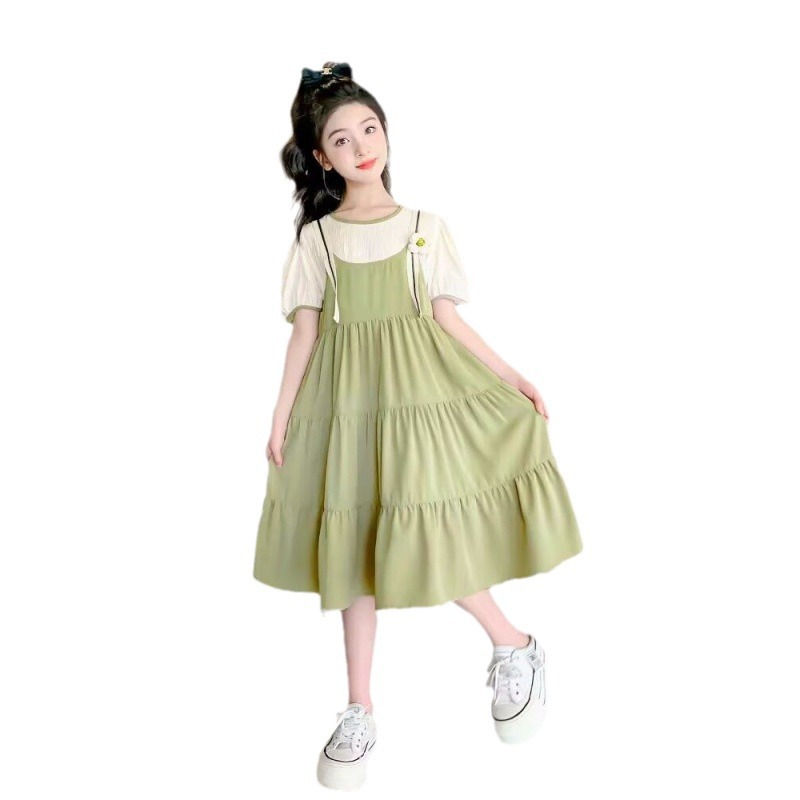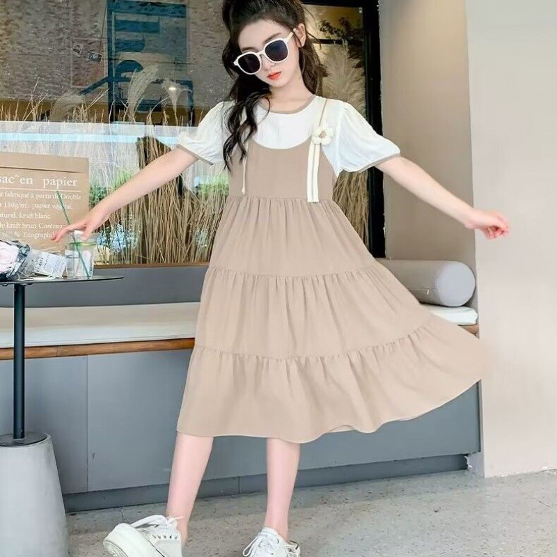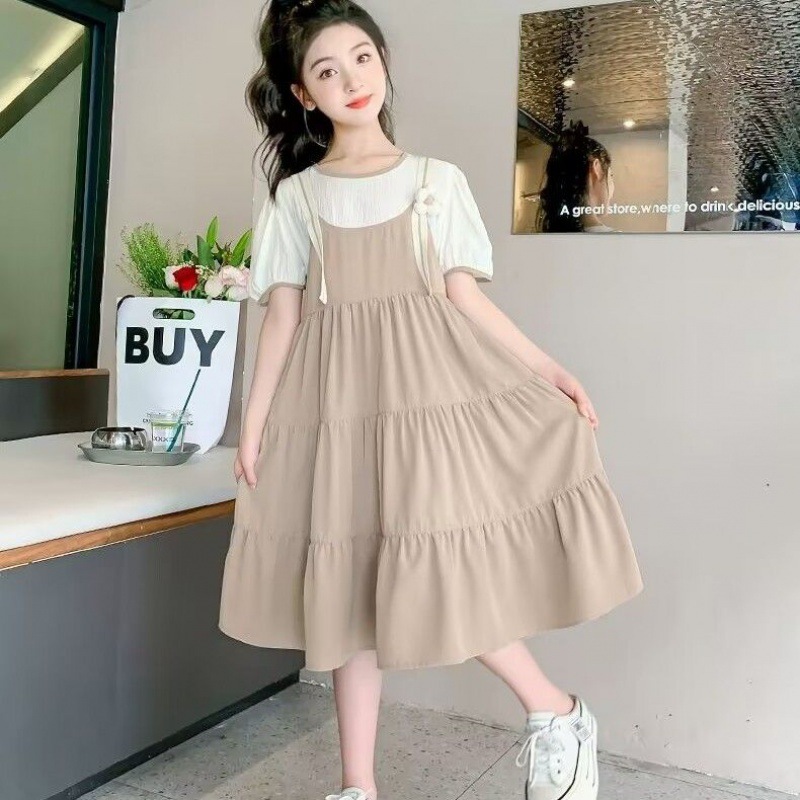 女童连衣裙夏装新款女孩夏季韩版公主裙童装儿童假两件吊带裙