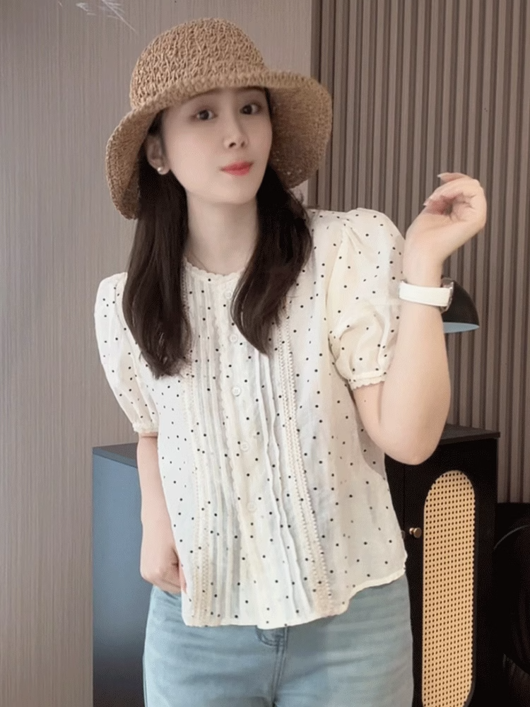 波点雪纺衫短袖衬衫女2025新款夏季漂亮洋气小衫独特别致雪纺上衣