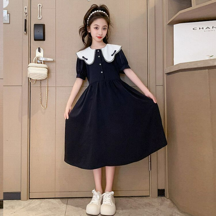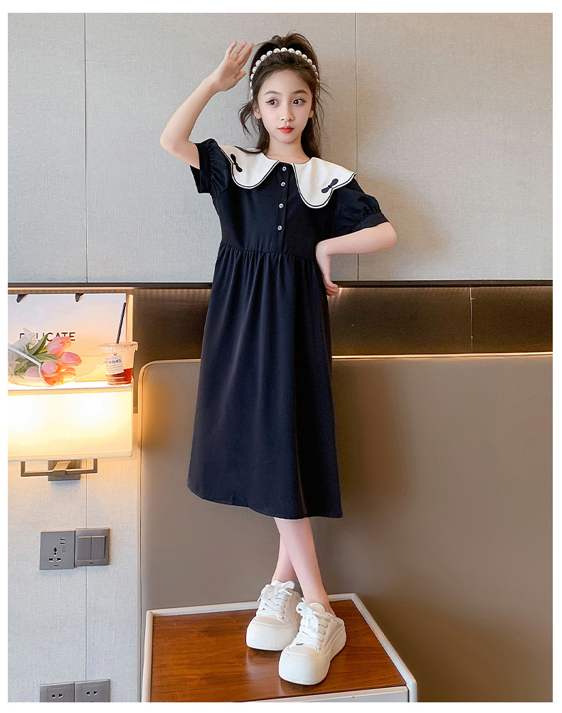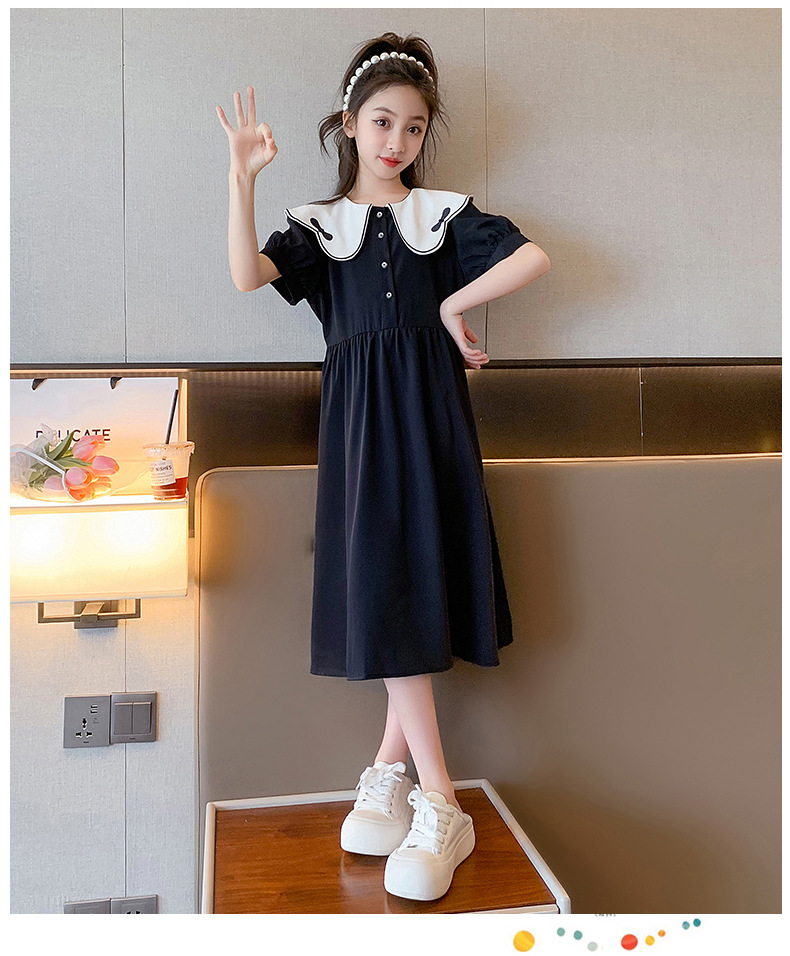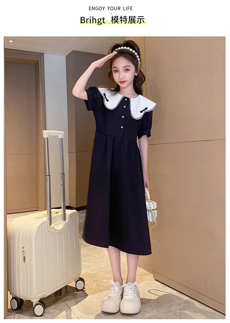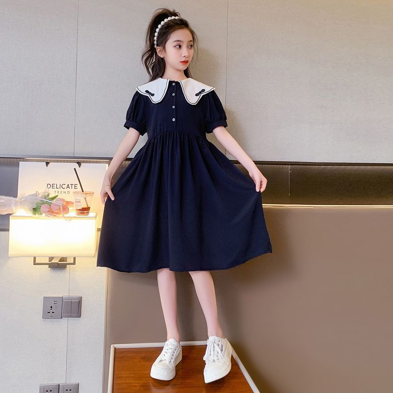 女童韩版泡泡袖休闲连衣裙中大童夏季新款洋气翻领气质时髦公主裙