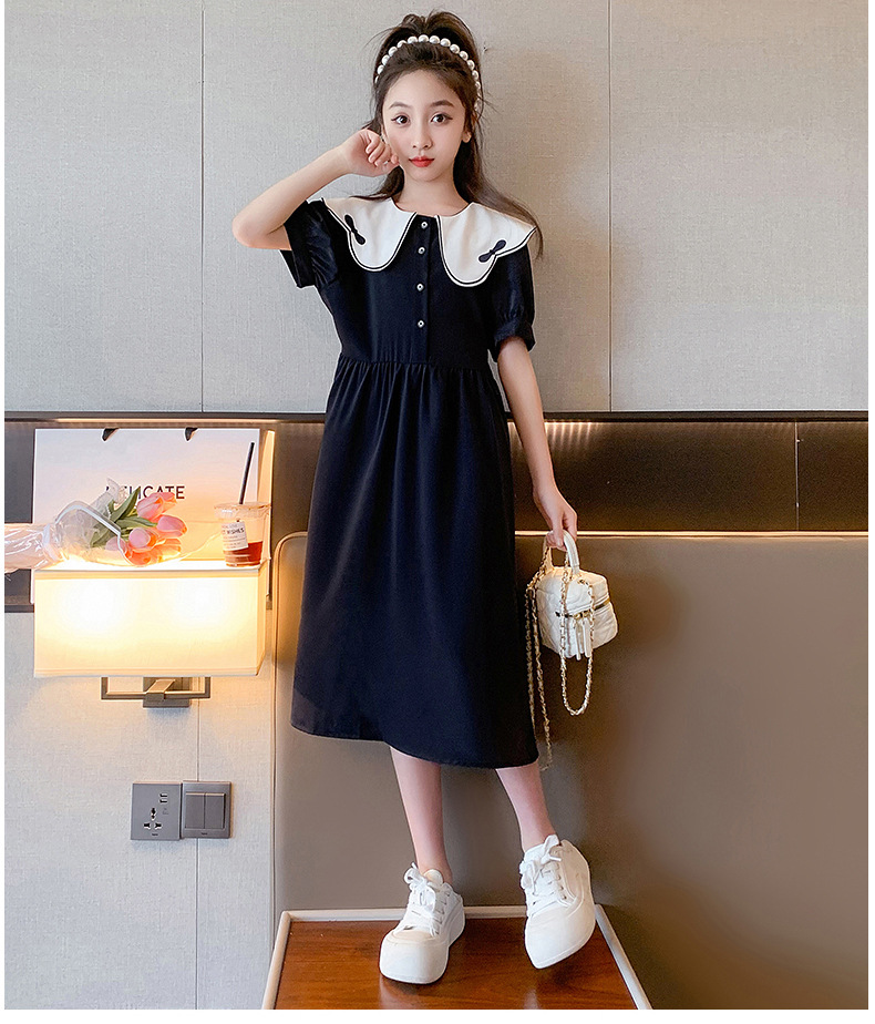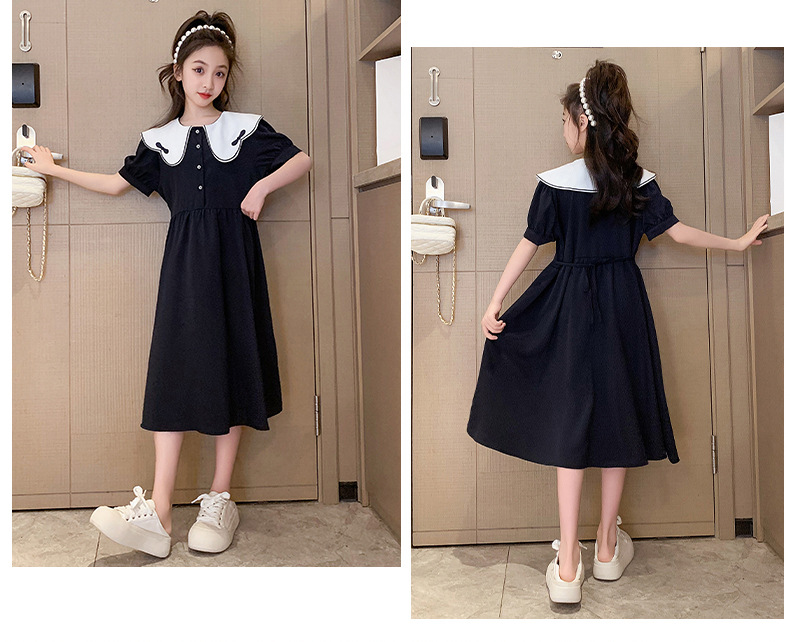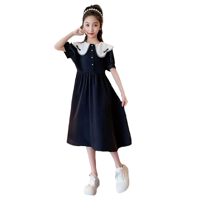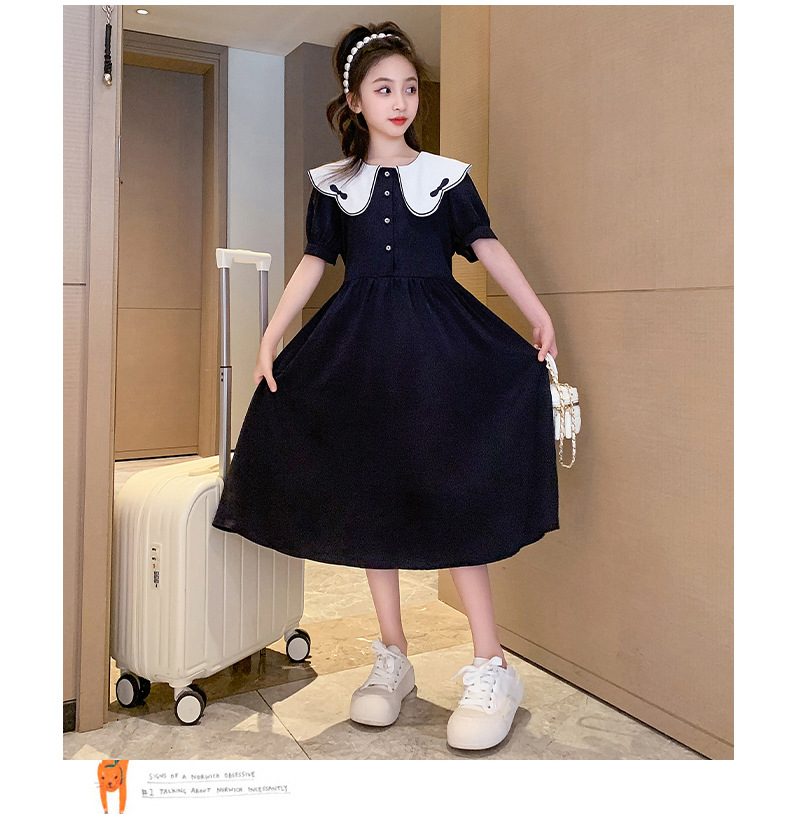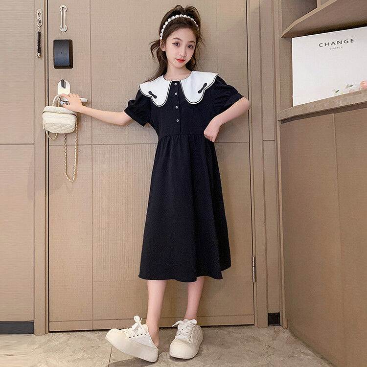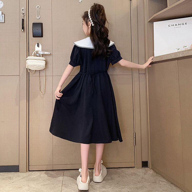 女童韩版泡泡袖休闲连衣裙中大童夏季新款洋气翻领气质时髦公主裙