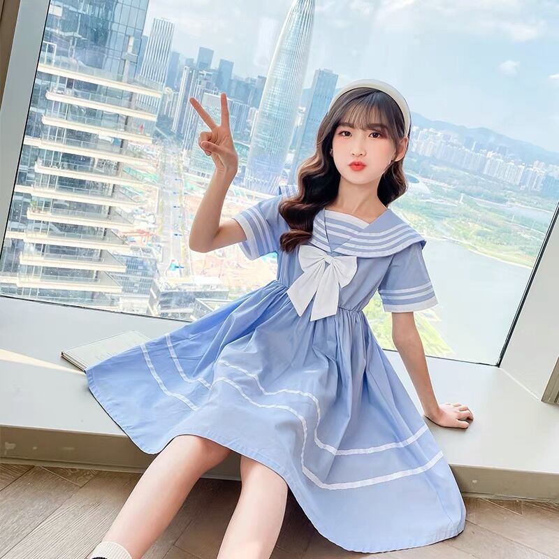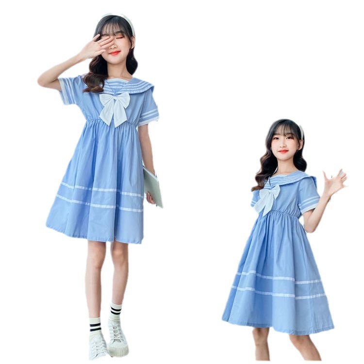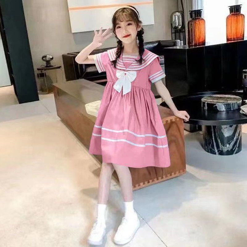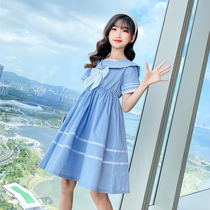 女童夏装连衣裙新款小香风蝴蝶结海军领裙子中小学生学院风连衣裙