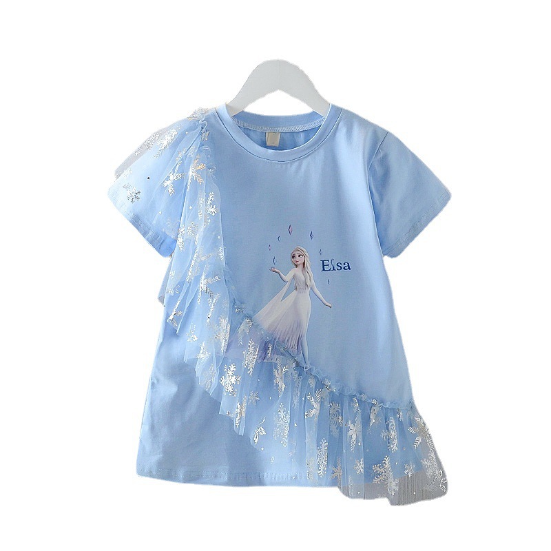 爱莎公主裙安娜连衣裙T恤裙子夏季短袖冰雪奇缘卡通出游中长款T恤