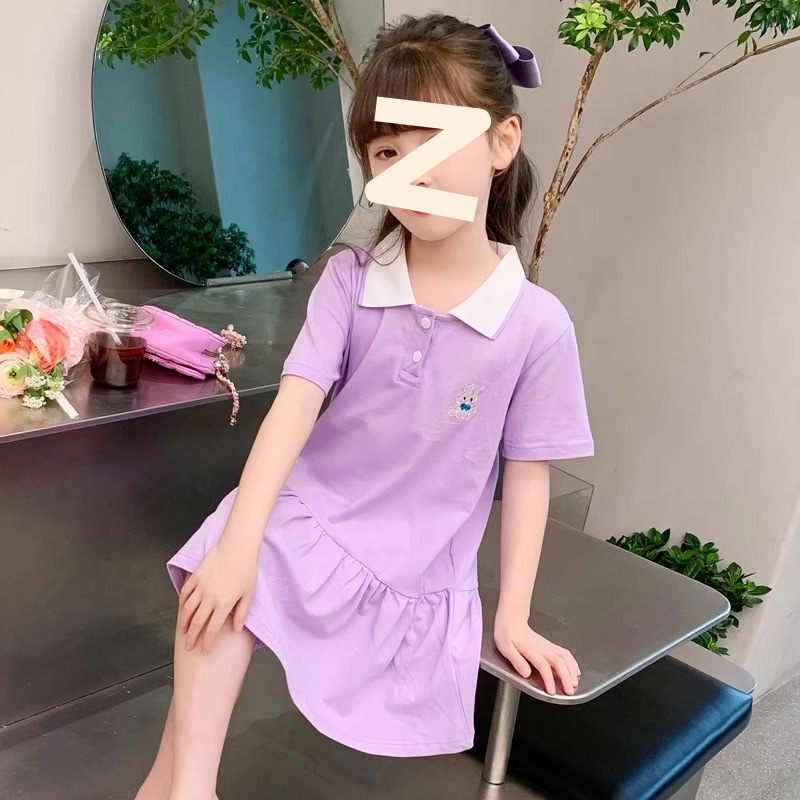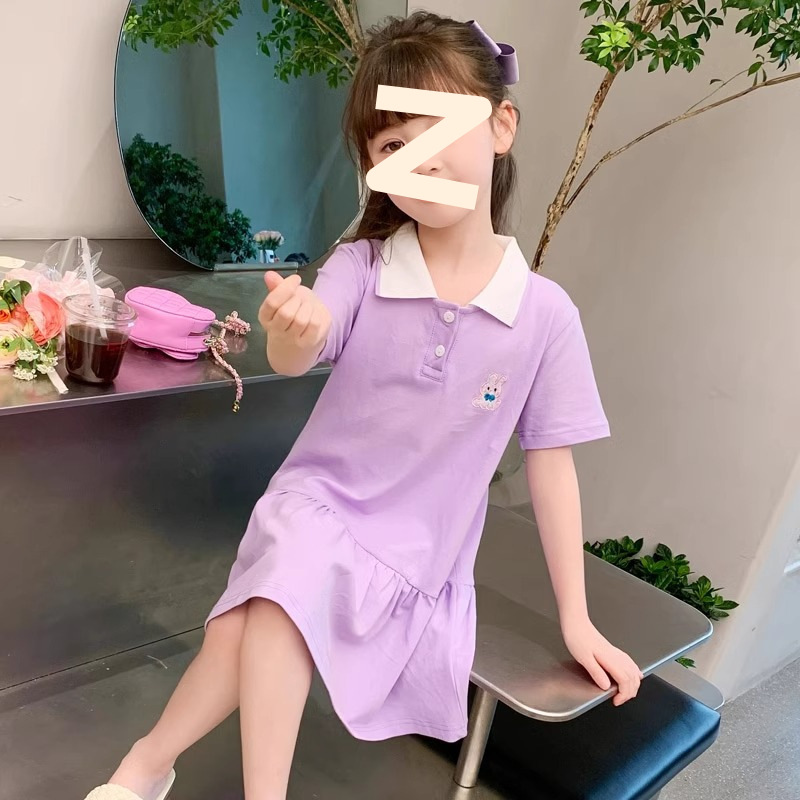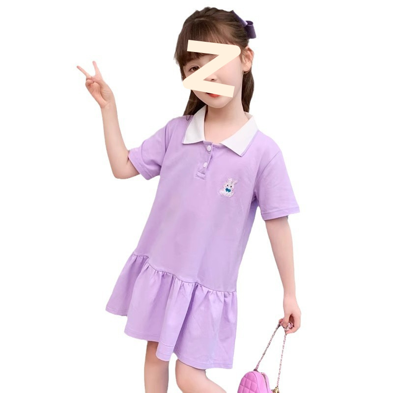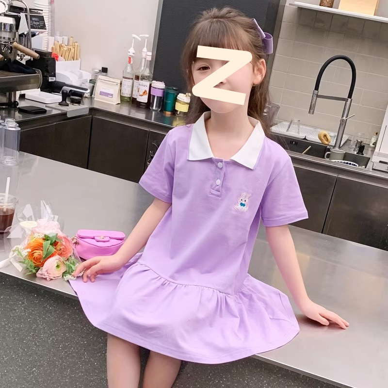 女童夏装翻领中长款T恤裙2025新款中小童POLO裙韩版拼接连衣裙潮