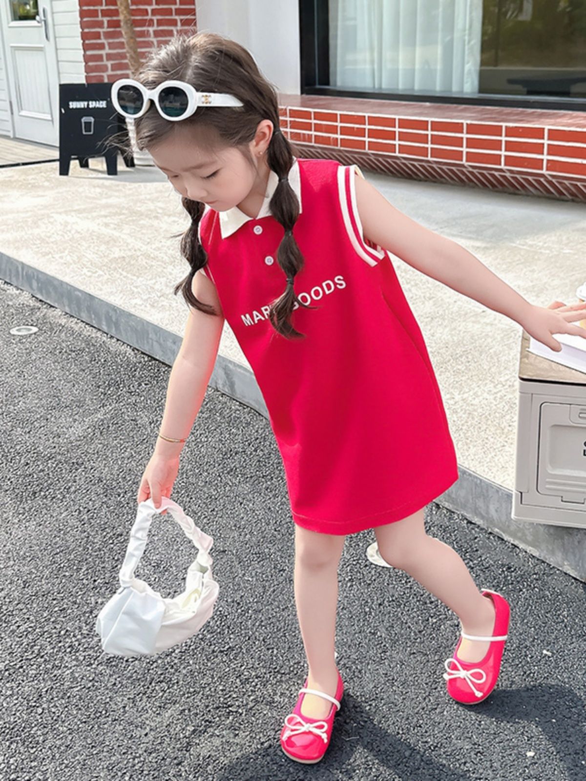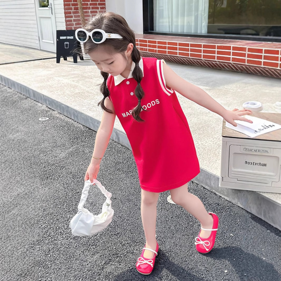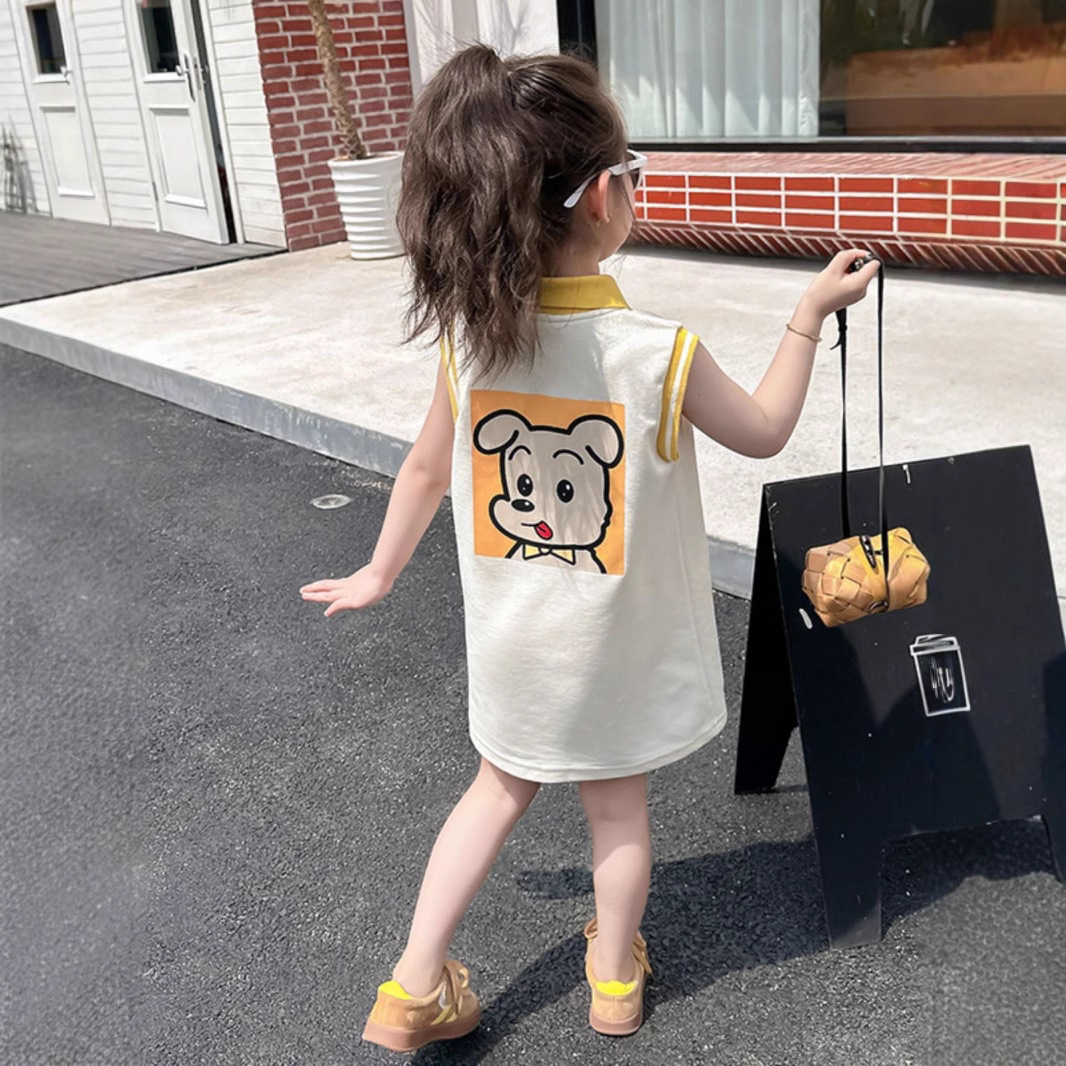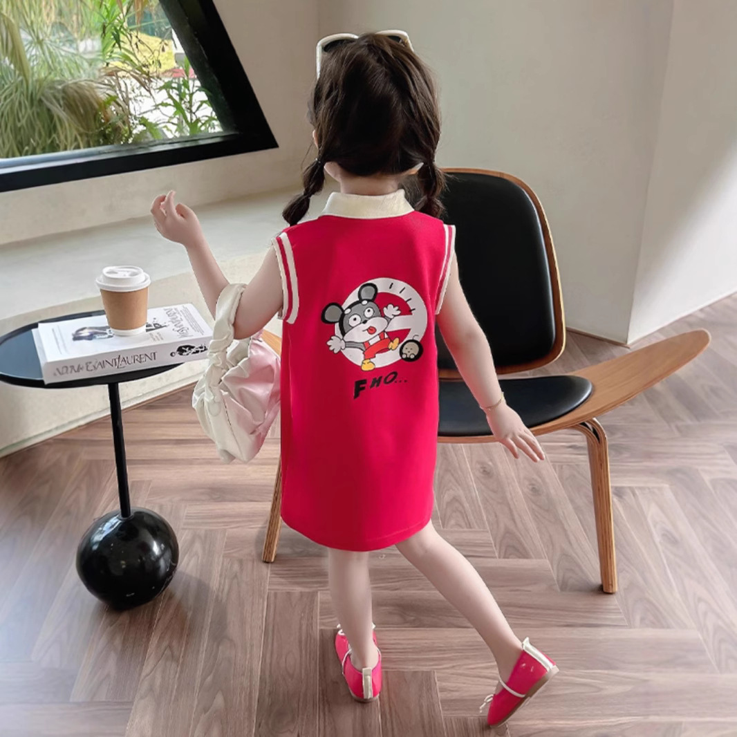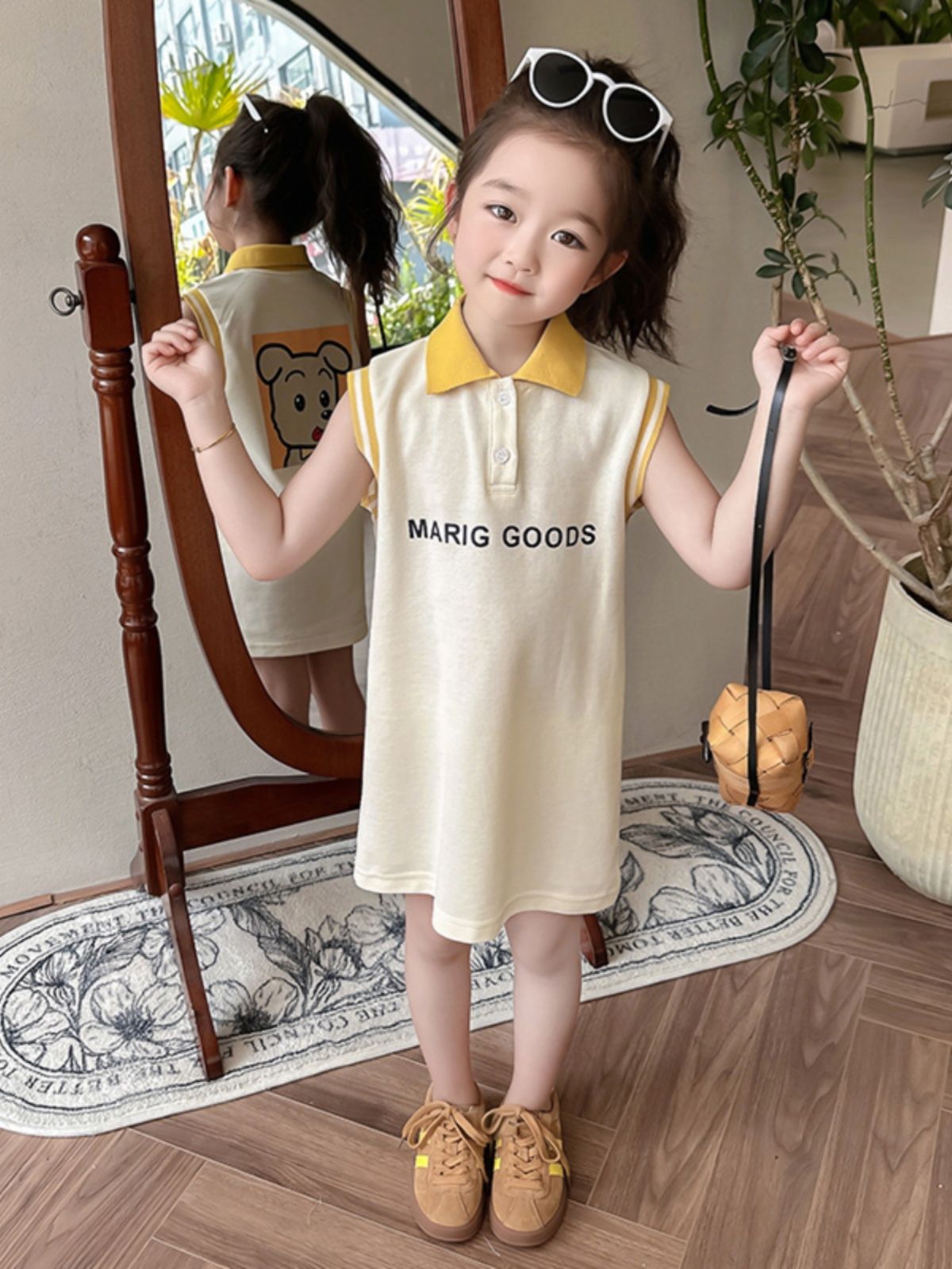 女童Polo背心小熊学院风连衣裙2025新款儿童夏季宝宝公主裙子夏装
