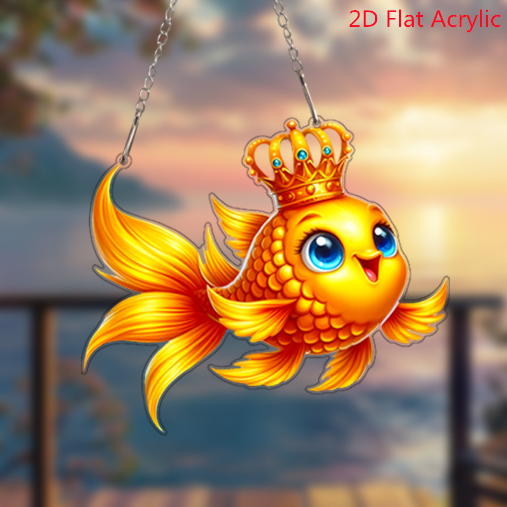 跨境卡通小金鱼亚克力窗户门挂艺术节日场景装饰挂件可爱皇冠吊坠