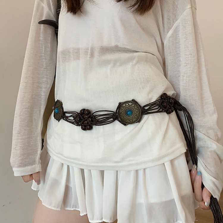 新款复古民族风流苏编织腰带女夏季装饰波西米亚连衣裙高级感腰链