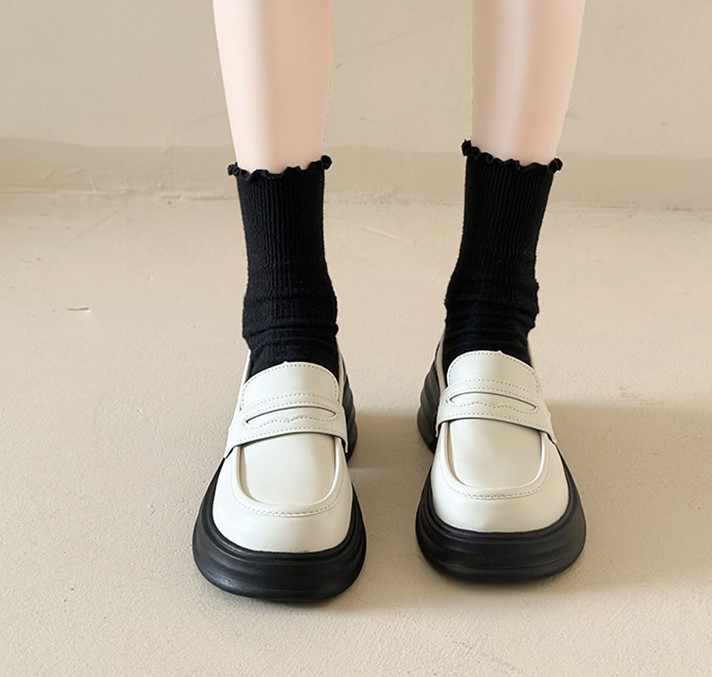 真皮厚底粗跟乐福鞋女春季新款复古百搭小皮鞋一脚蹬jk单鞋子