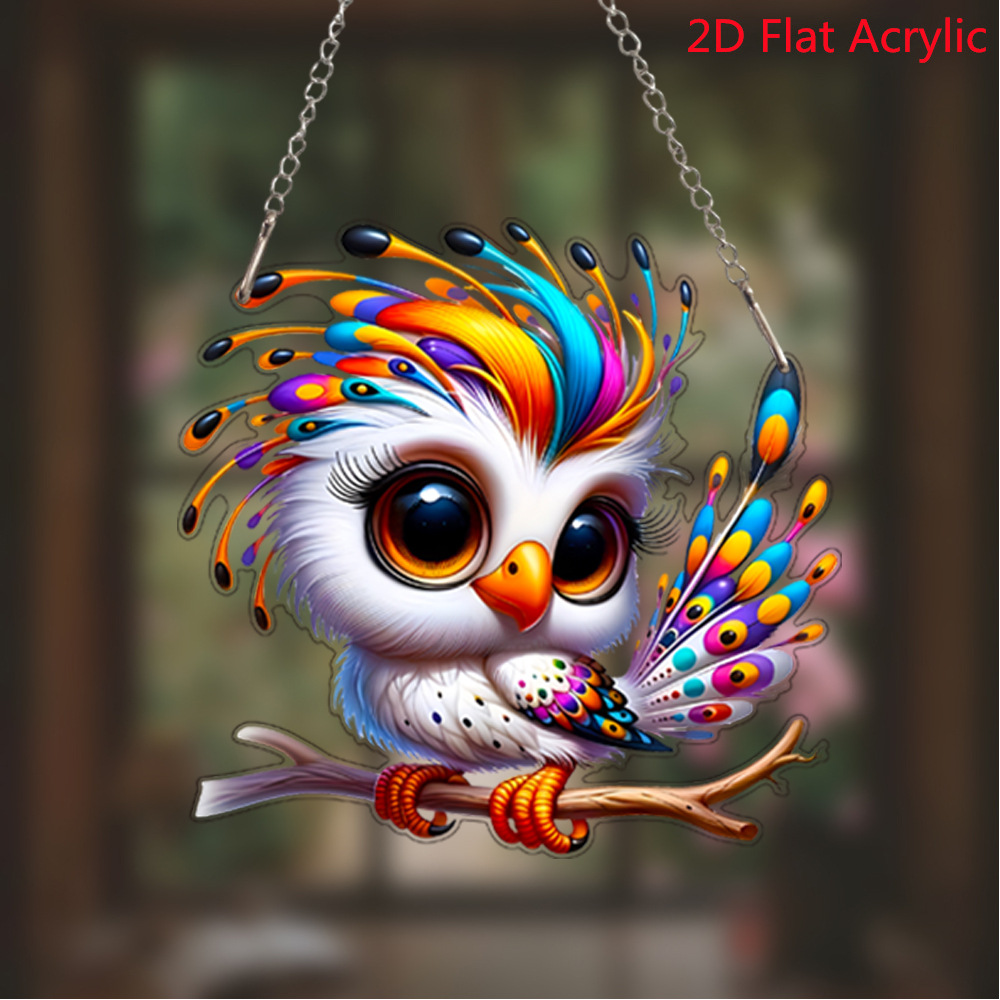 跨境卡通猫头鹰亚克力窗户门挂艺术节日场景装饰挂件挂饰动物