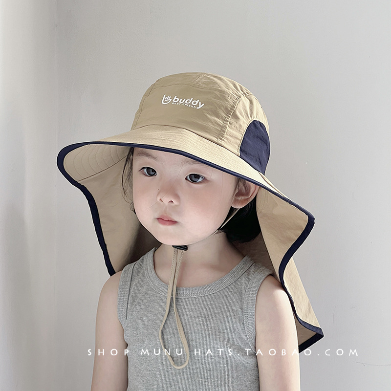 儿童春夏带披肩防晒帽户外护脖防紫外线遮阳帽宝宝大帽檐太阳帽子