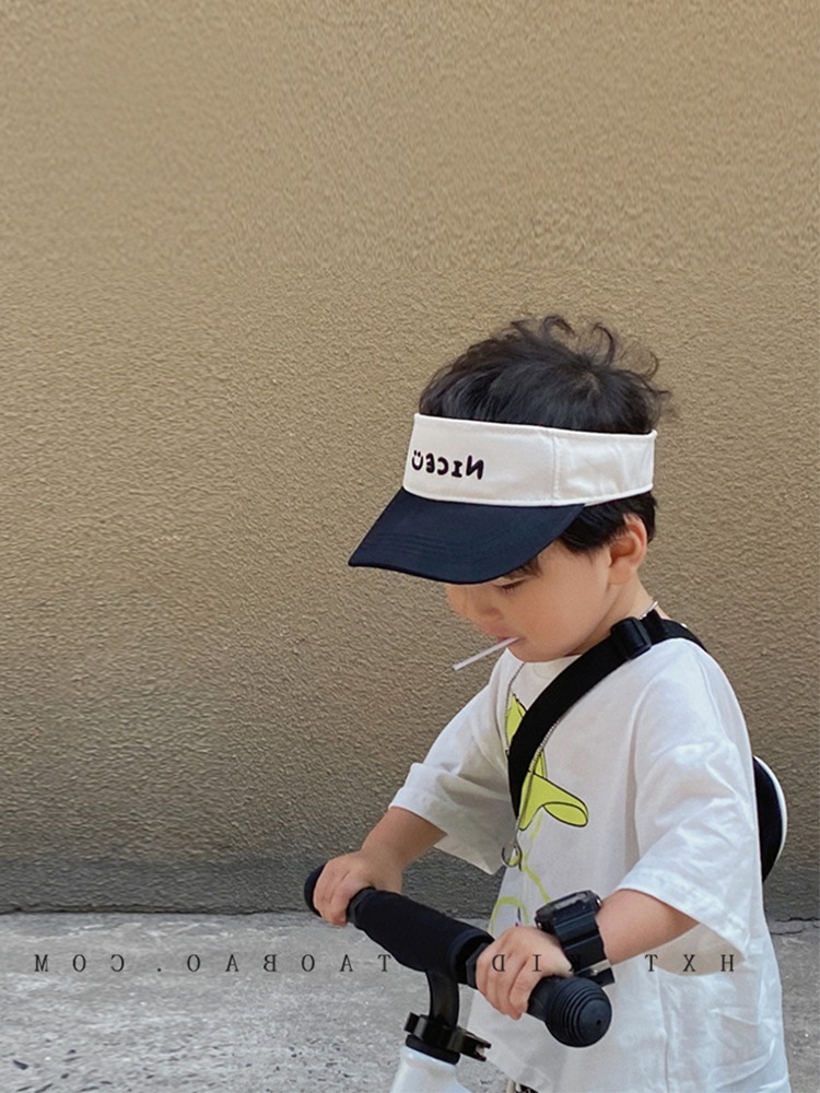 宝宝帽子夏天空顶鸭舌帽小笑脸刺绣儿童运动韩版无顶棒球帽潮