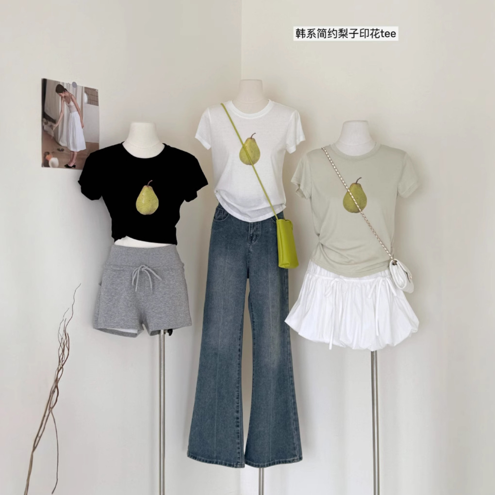 夏上新!Hers2025夏季新款简约日常通勤百搭正肩梨子短袖T恤女