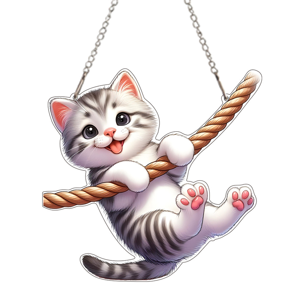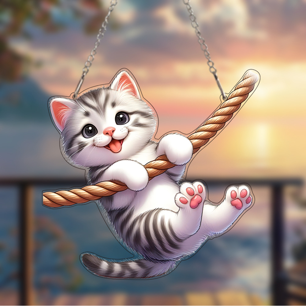跨境卡通荡秋千的猫咪亚克力窗户门挂艺术节日场景装饰挂件可爱