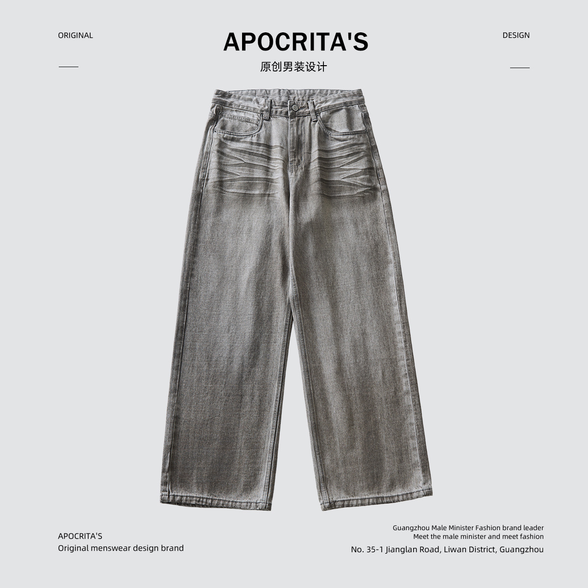 APO男装|高街复古水洗猫须牛仔裤男士潮流高级感宽松直筒休闲长裤