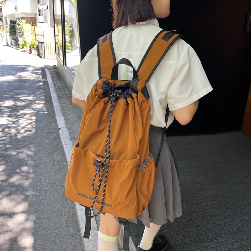 秀龙开学季新款学生双肩包纯色简约抽绳背包日系潮流初中生书包男