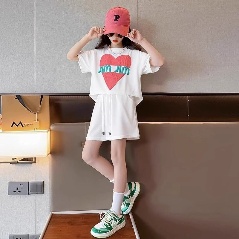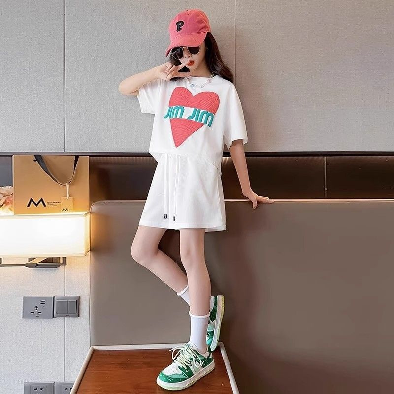 2025款热销现货女童夏季短袖套装儿童女孩运动休闲短袖短裤两件套