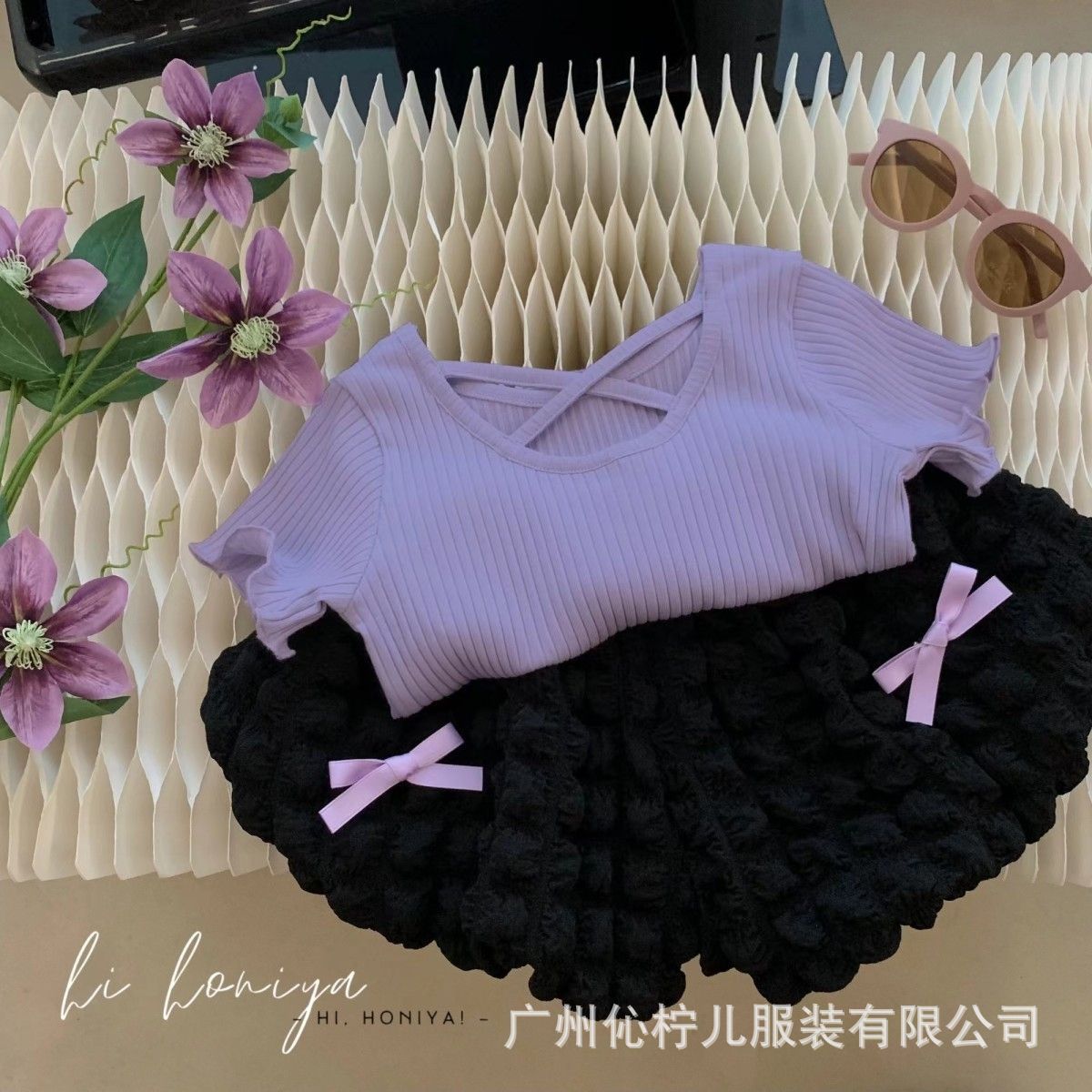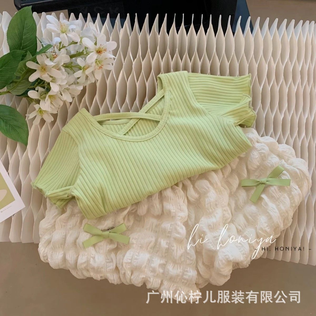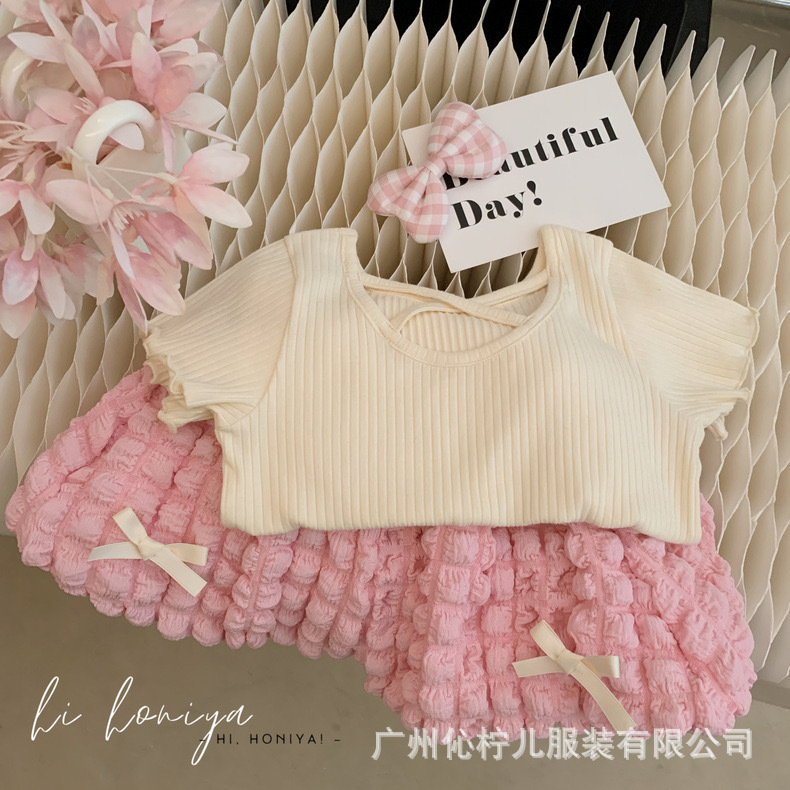 女童夏装套装2025新款女宝宝韩版时髦短袖小女孩花苞裤夏季两件套