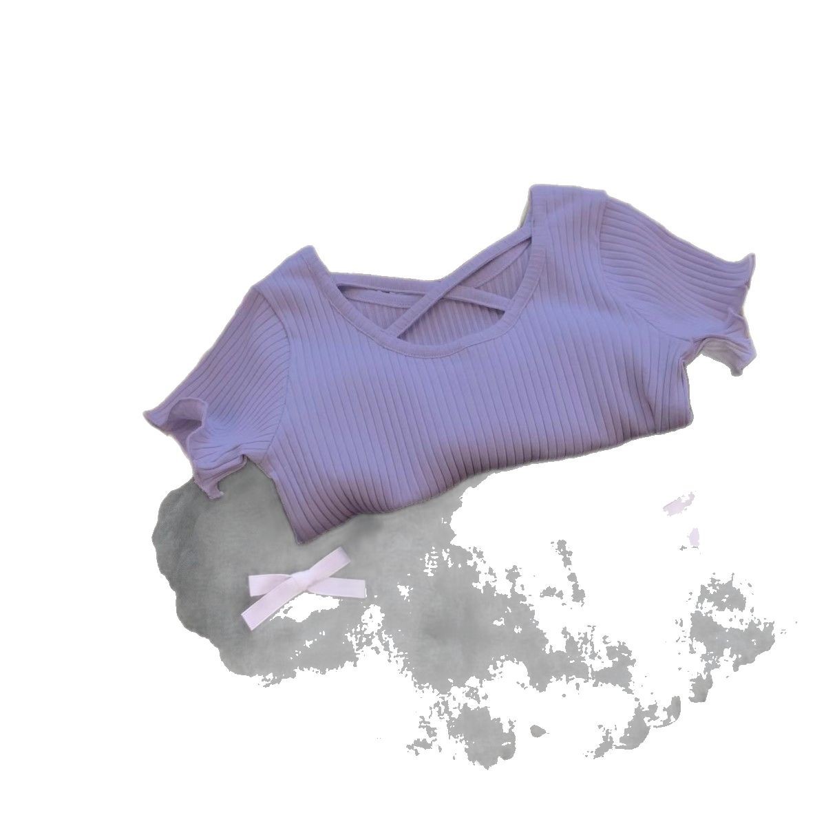 韩版正肩别致短款上衣新款纯色坑条短袖T恤女夏季辣妹POLO衫