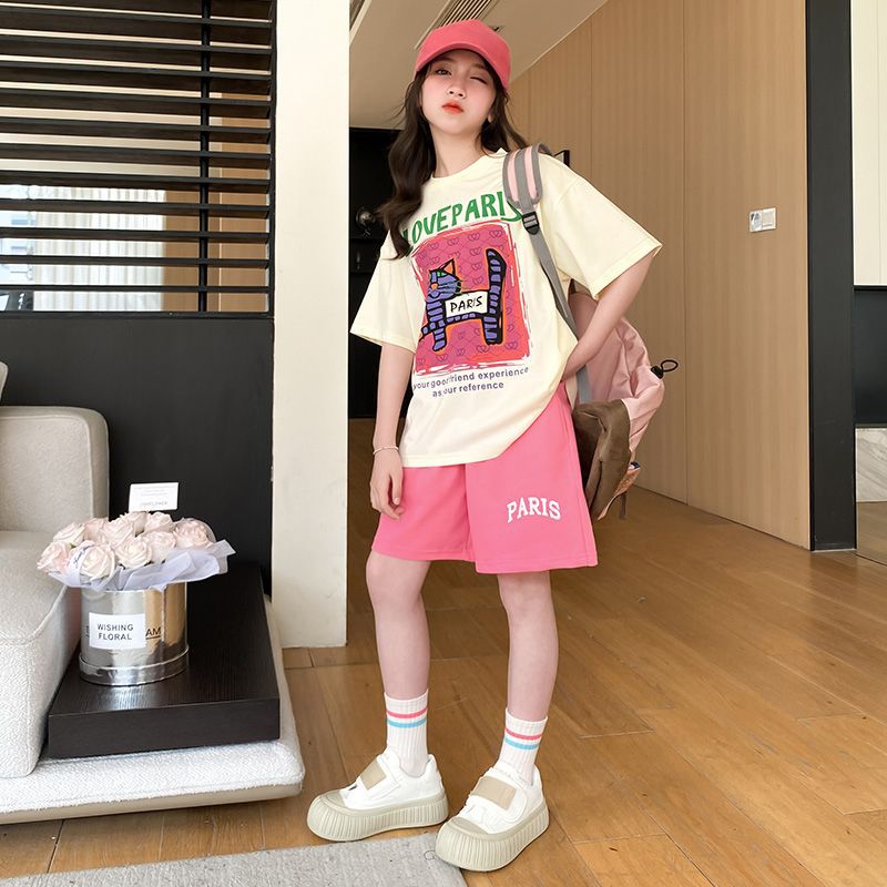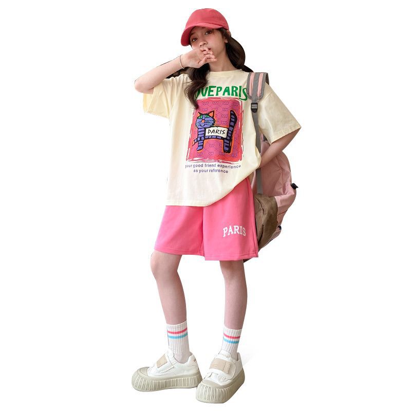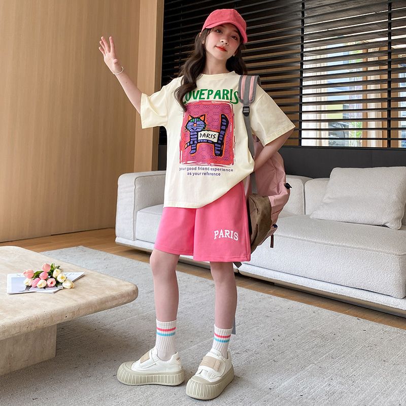 女童夏季短袖套装2025新款女大童可爱休闲印花韩版短裤运动两件套