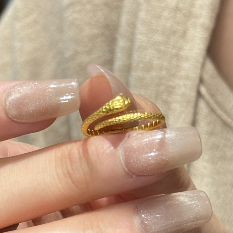 小红书爆款素金灵蛇戒指女新款中古风拉丝开口指环一件代发