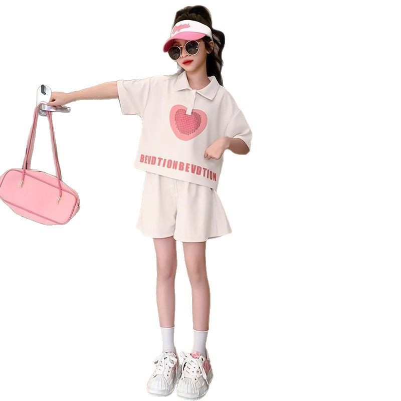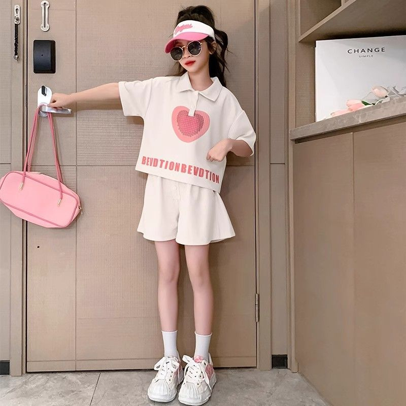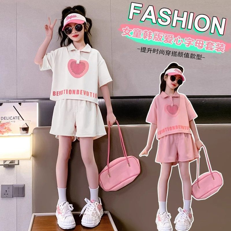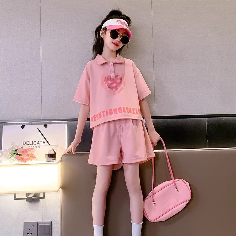 2025款热销现货女童夏季短袖套装新款儿童中大童POLO衫短裤两件套