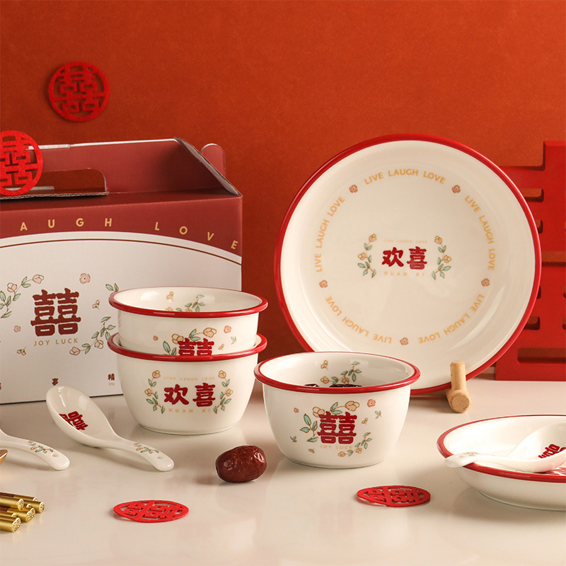 礼盒结婚喜字复古家用二人食新婚餐具套装伴手礼陶瓷碗