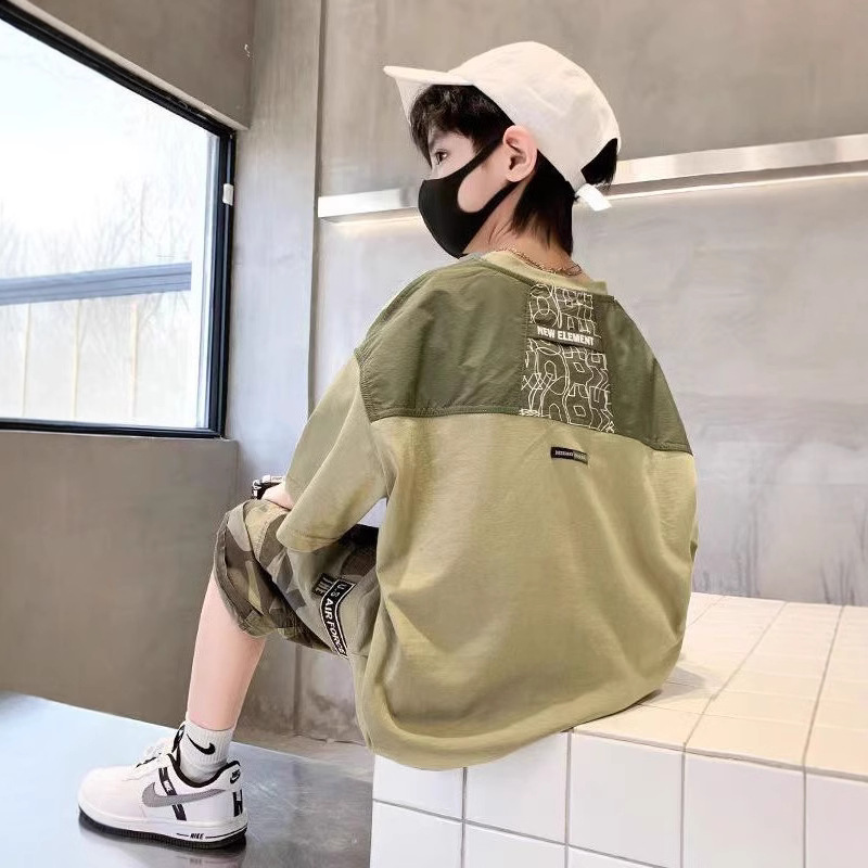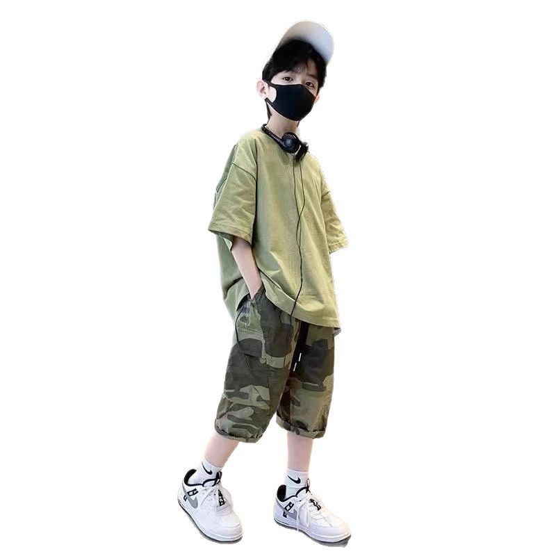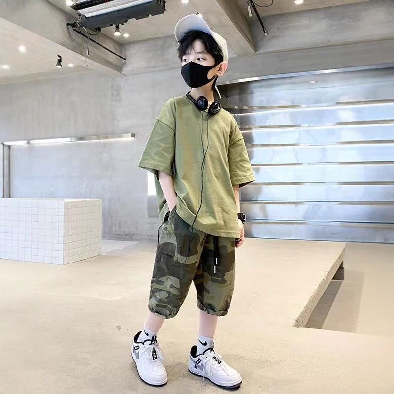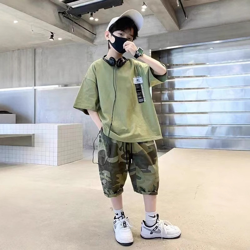 童装男童夏季2025新款中大童迷彩T恤五分裤时髦休闲宽松两件套潮