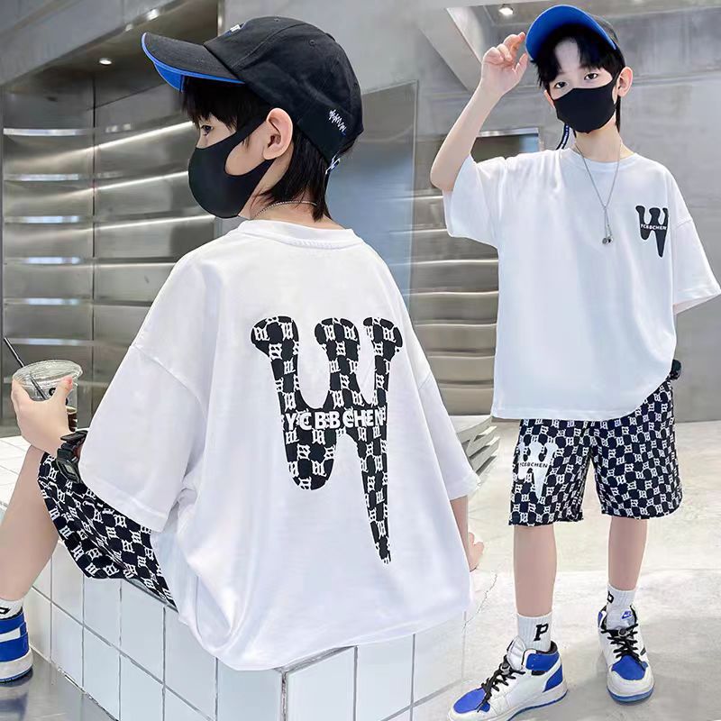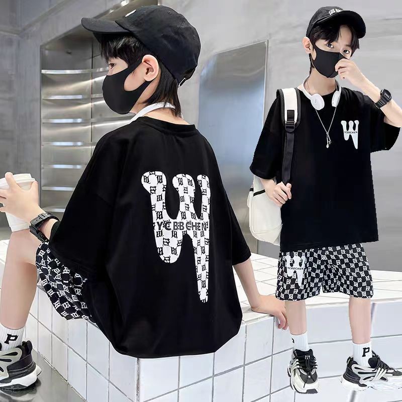 男童w字母套装2025夏装新款儿童帅气休闲两件套中大童外贸童装潮