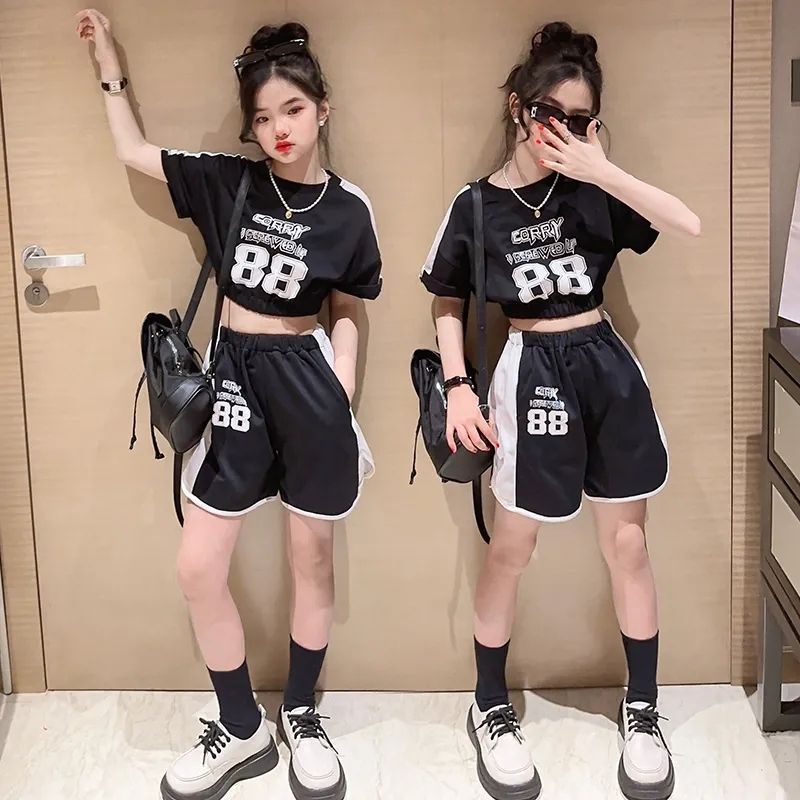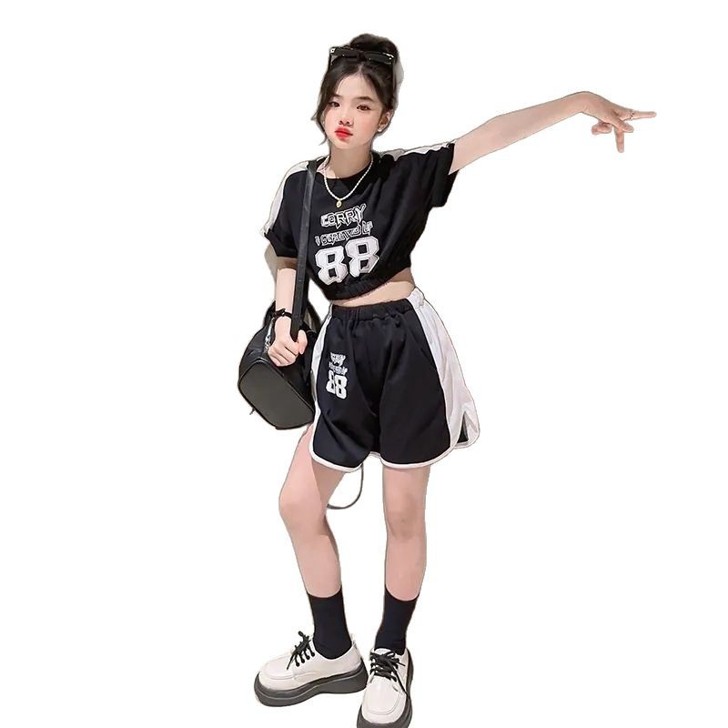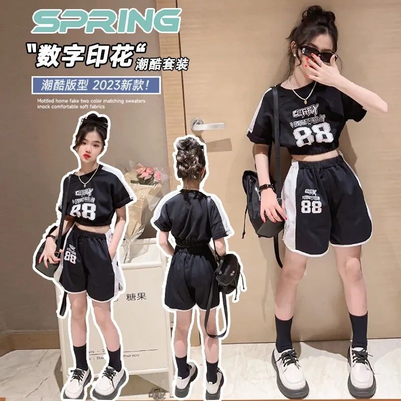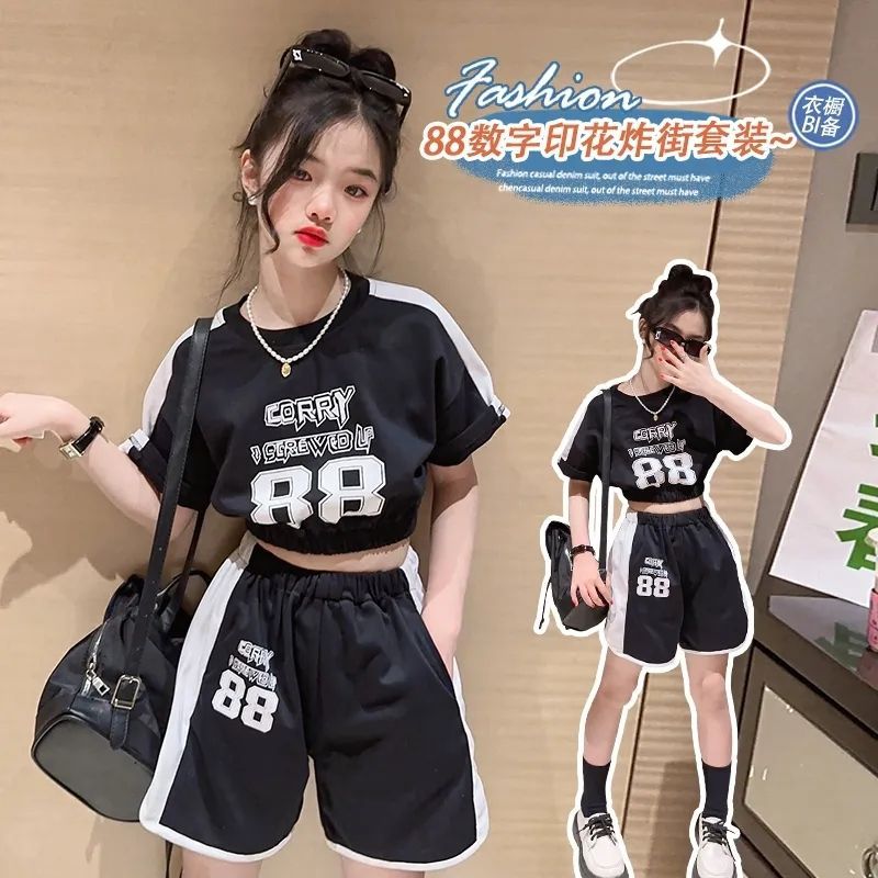 女童夏季套装2025新款中大童时髦短袖夏装儿童洋气短裤运动两件套