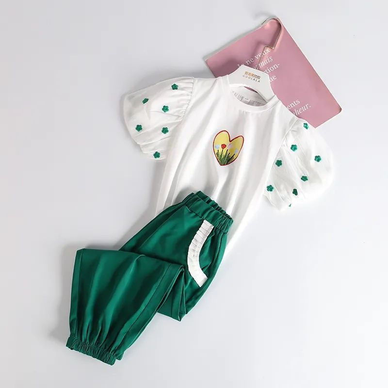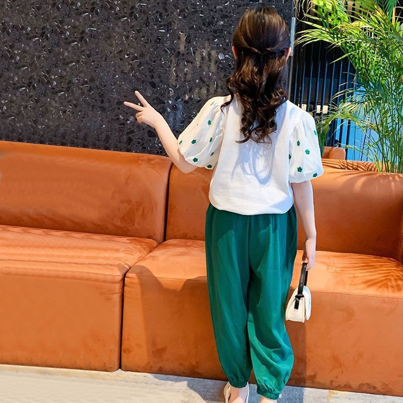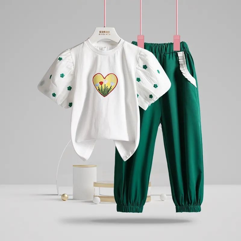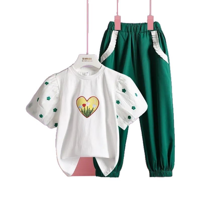 女童夏季套装2025新款韩版中大童时髦洋气小女孩休闲泡泡袖两件套