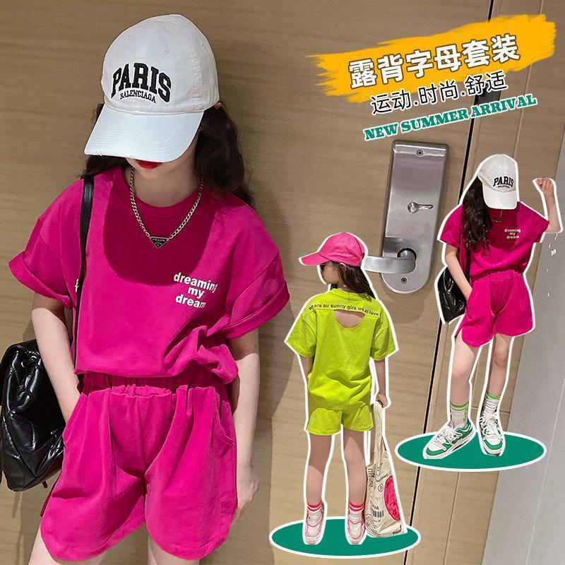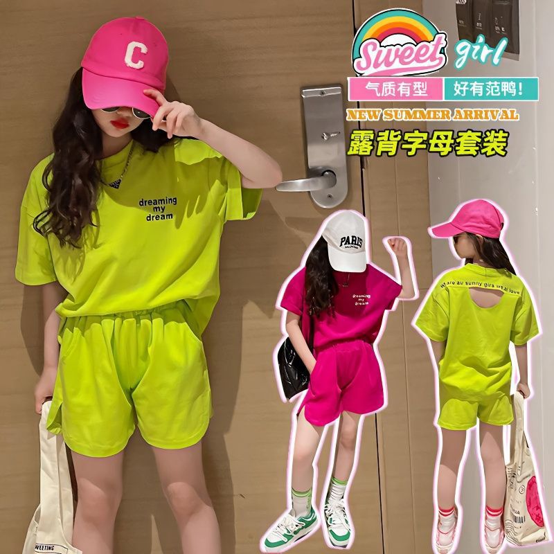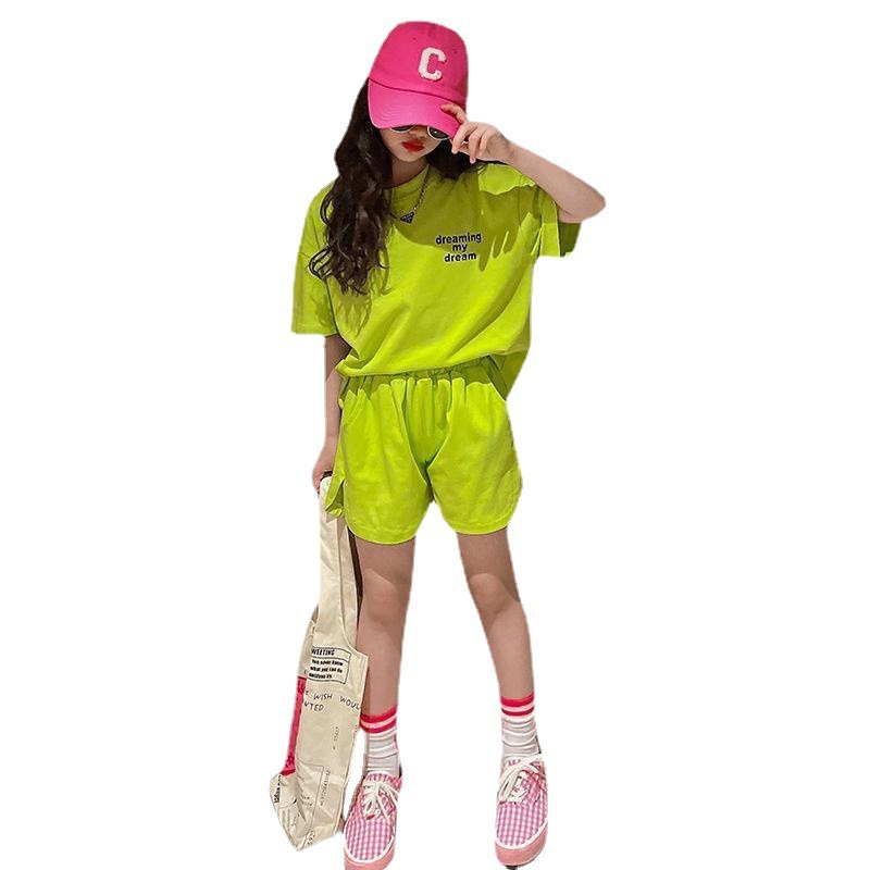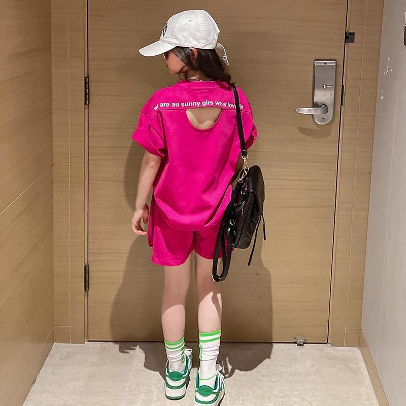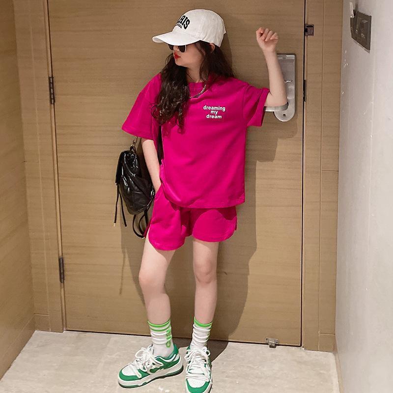 女童夏季套装韩版时髦中大童宽松短袖上衣休闲女孩运动短裤两件套