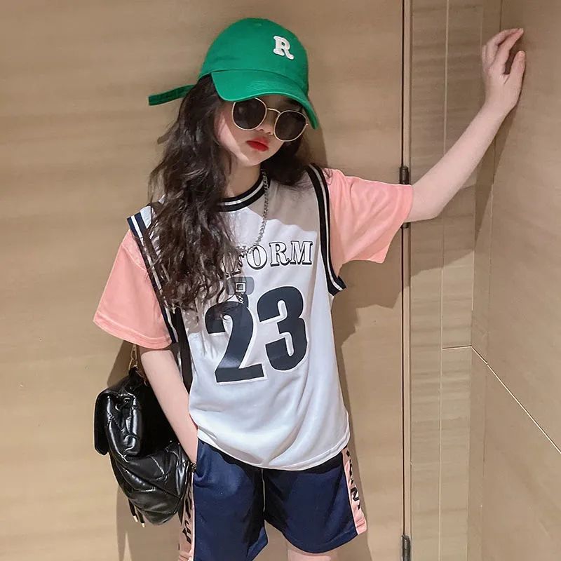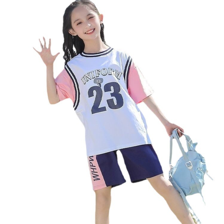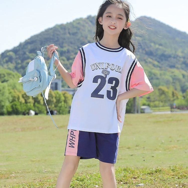 女童夏装短袖套装2025新款洋气童装小女孩学院风儿童套装两件套潮