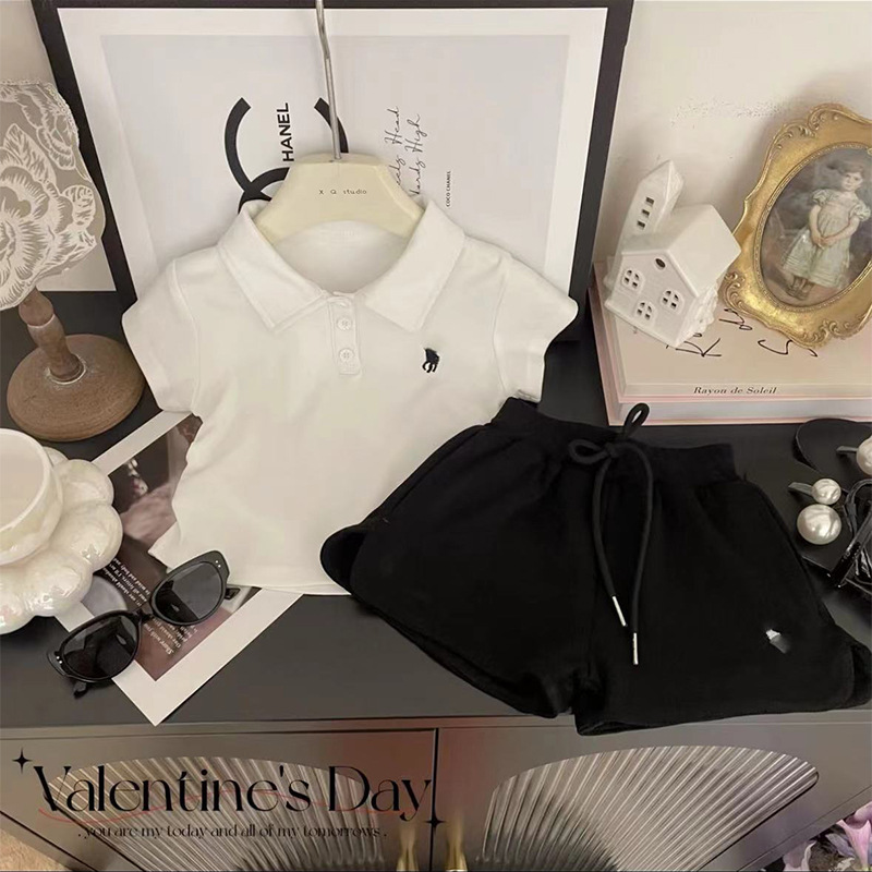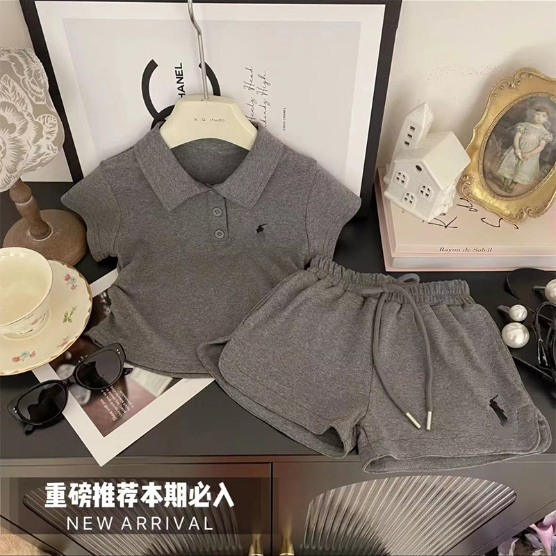 童装夏季女童套装中小童短袖Polo领上衣阔腿短裤儿童运动服两件套
