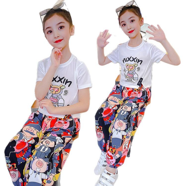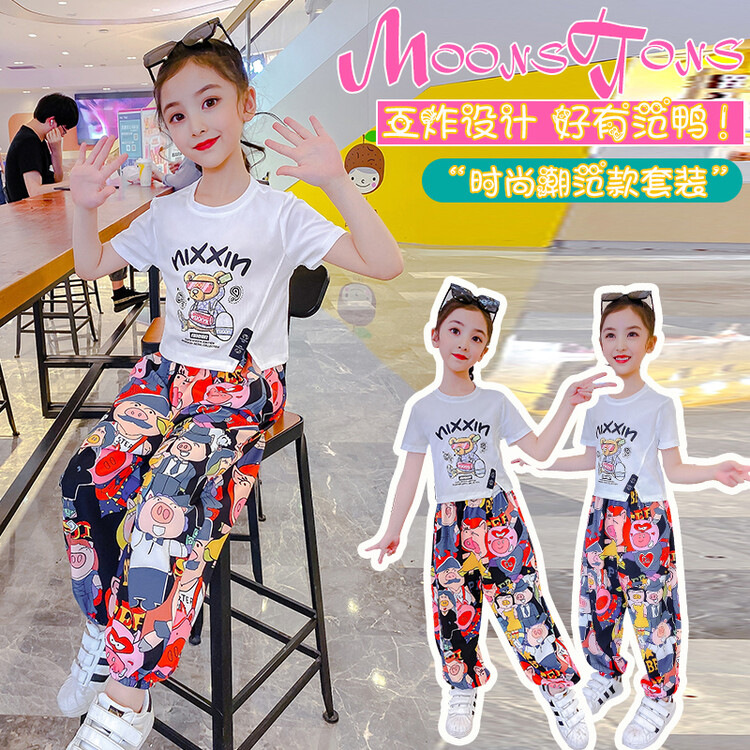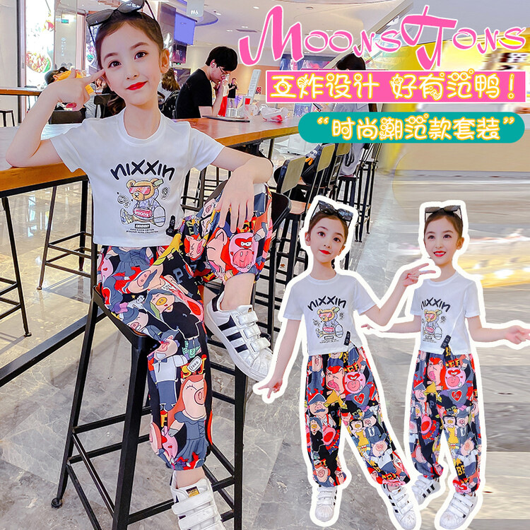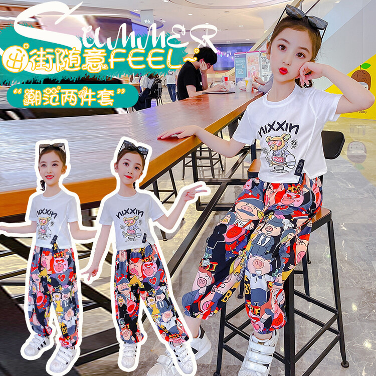 女童套装夏装2025新款儿童网红洋气薄款夏季中大童时髦短袖两件套