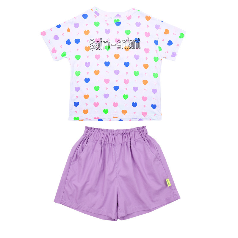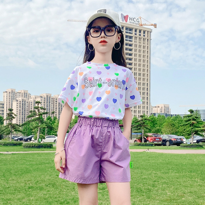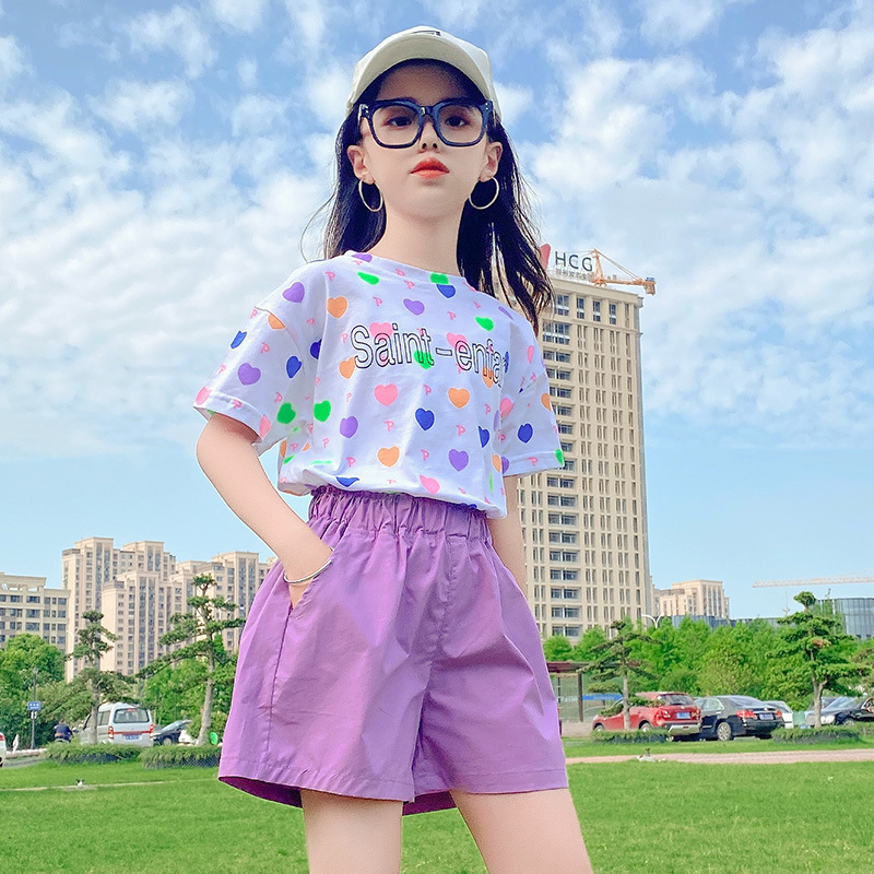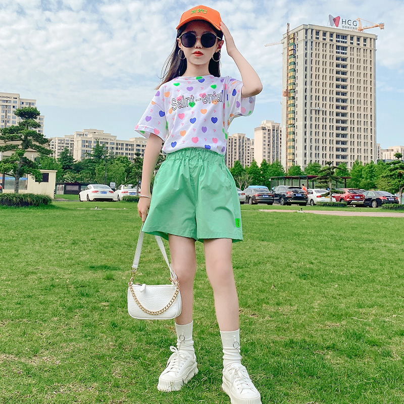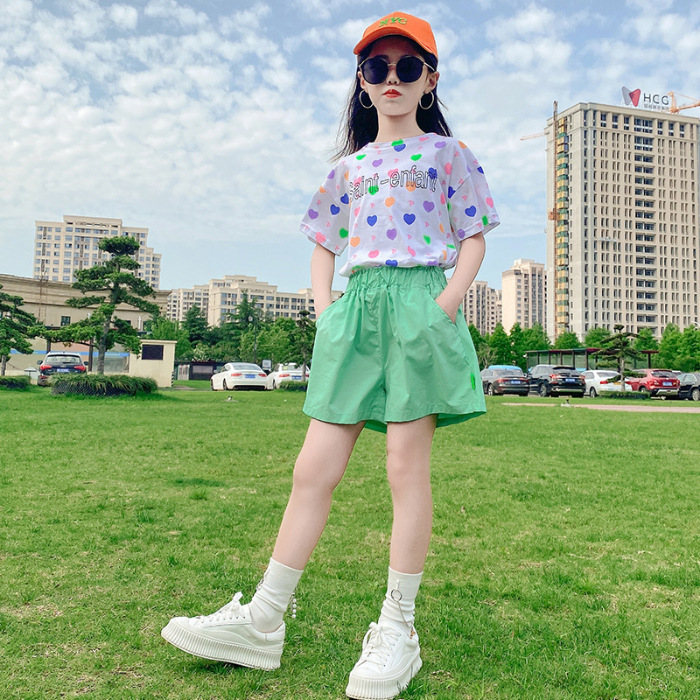 女童洋气套装夏季新款中大童字母短袖女孩休闲短裤运动两件套