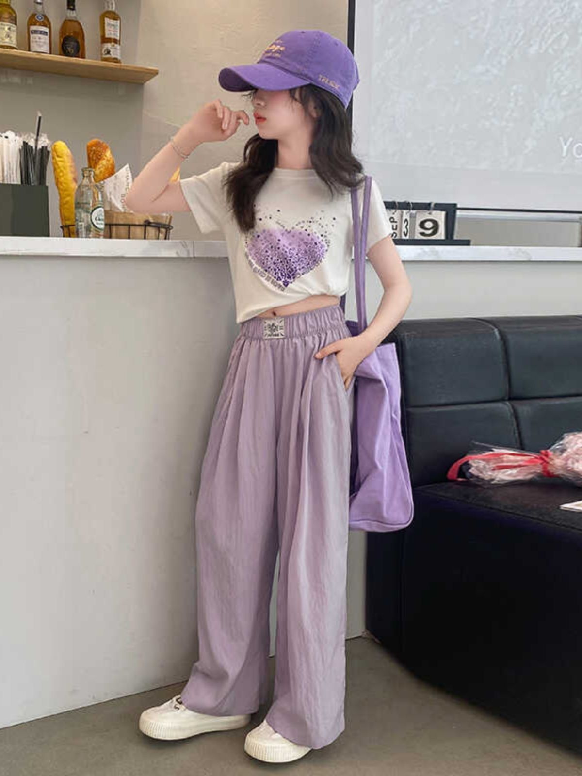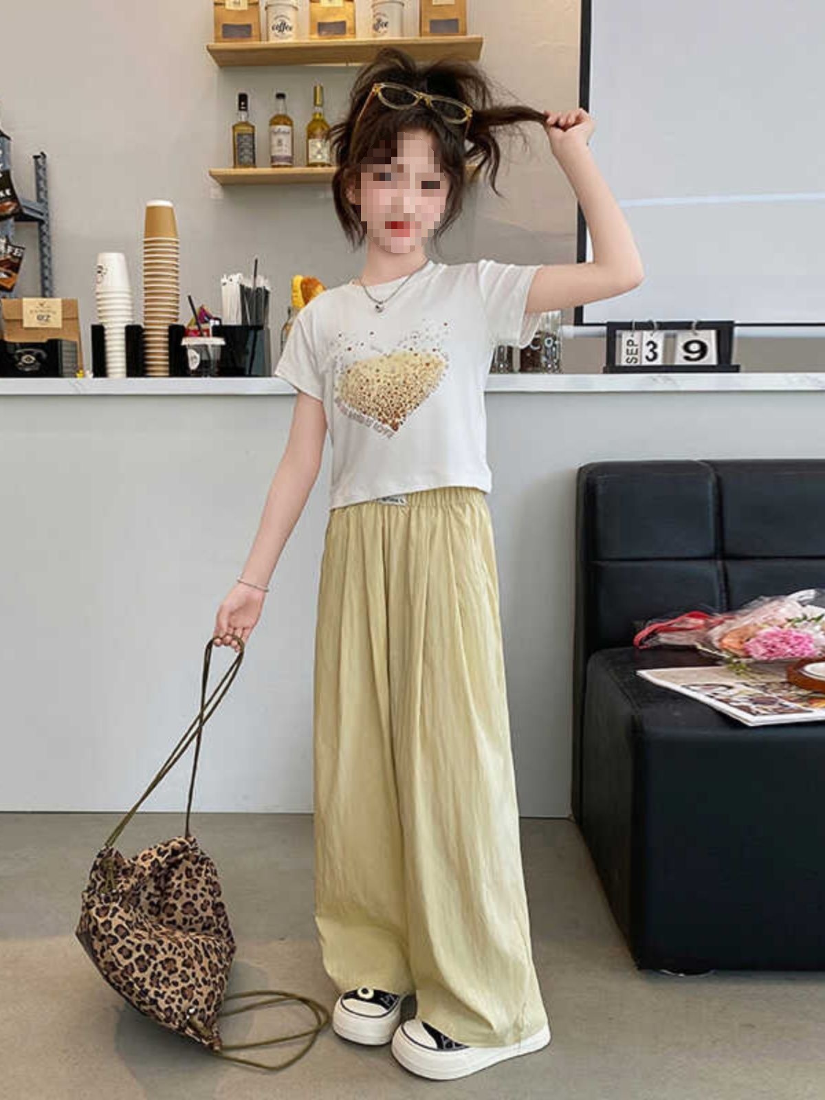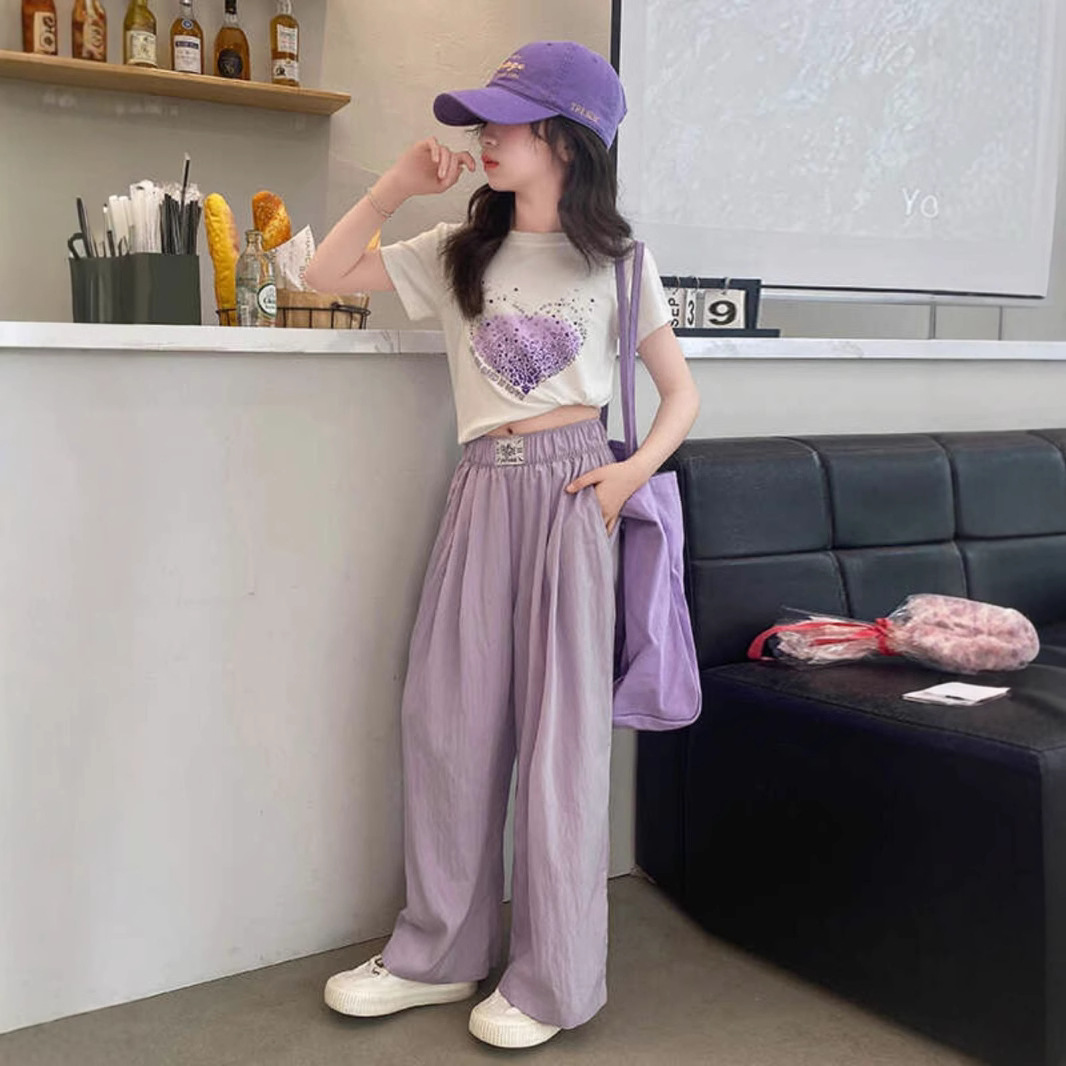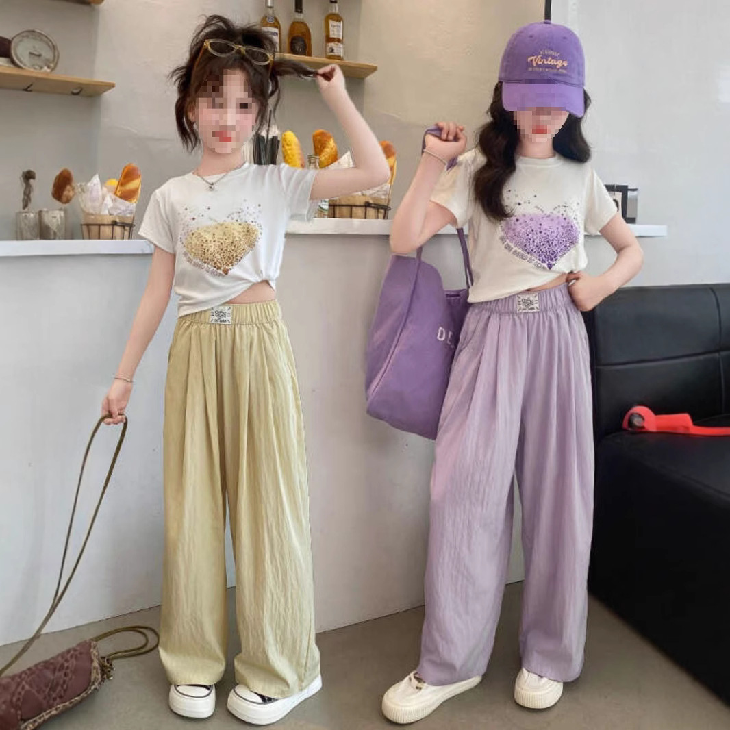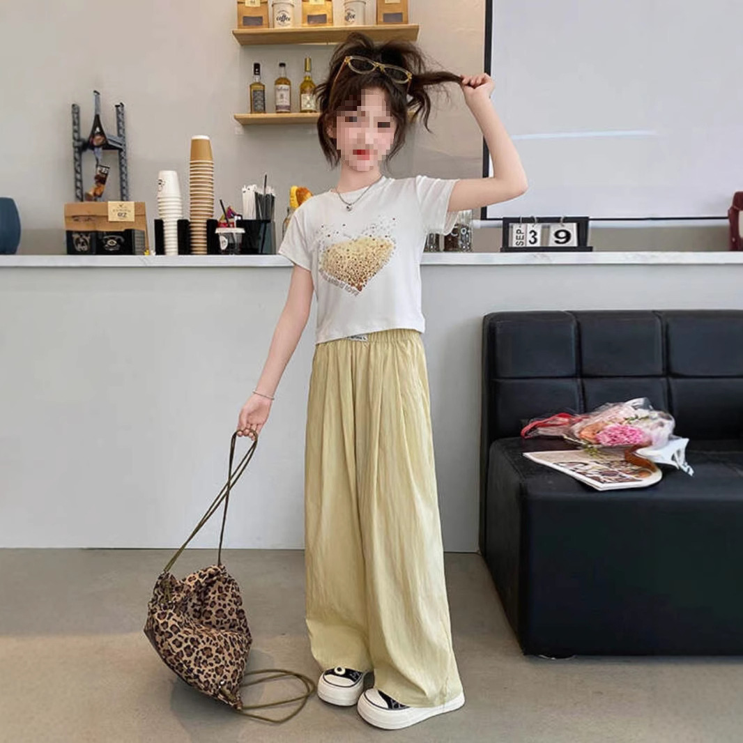 女童夏装阔腿裤套装2025新款中大童韩版洋气时髦卡通运动两件套潮