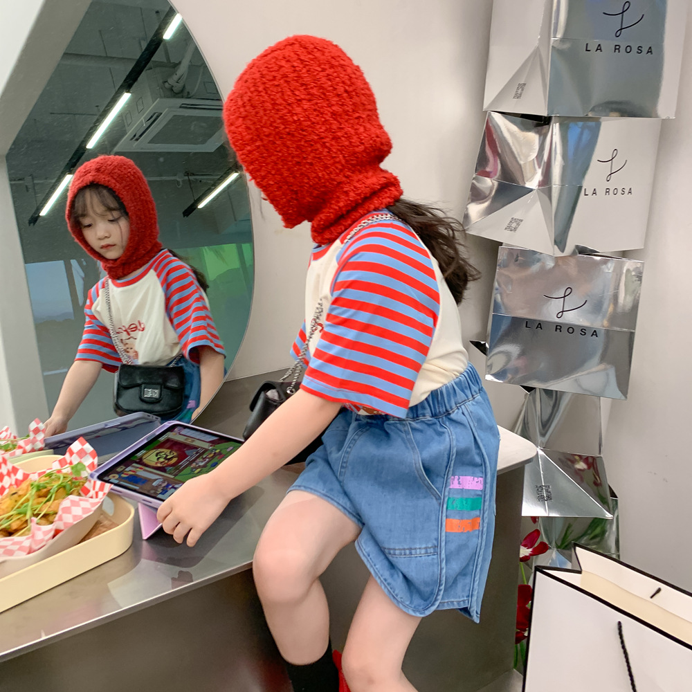 夏季新款童装 女童彩条牛仔短裤韩版儿童夏款洋气百搭牛仔裤
