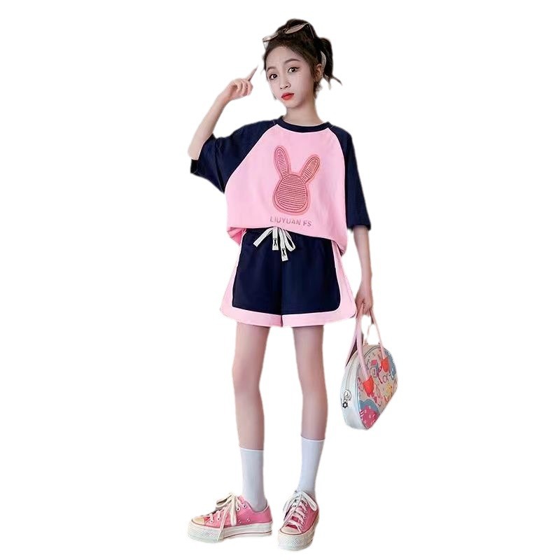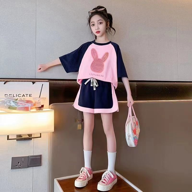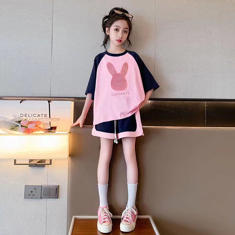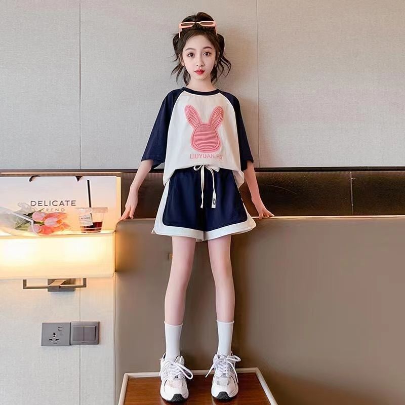 女童夏季短袖短裤运动套装中大童时髦洋气夏款儿童韩版休闲夏装潮