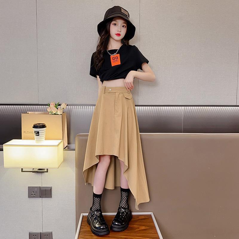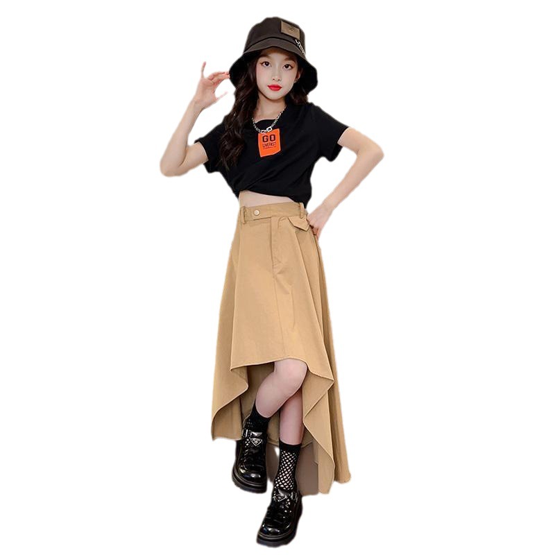 女童夏季套装新款洋气时髦短袖儿童装网红中大童半身裙两件套