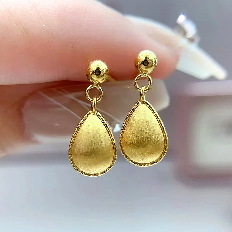 小红书爆款拉丝水滴耳钉女周家同款秋冬搭配金色耳饰品一件代发