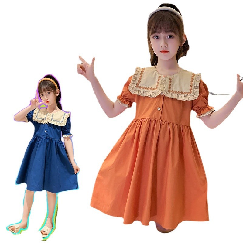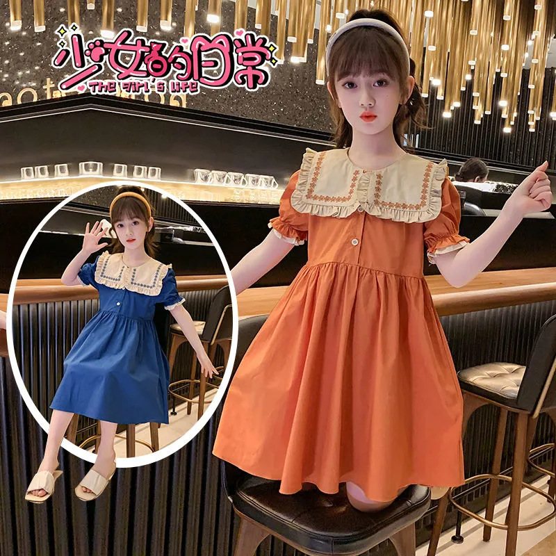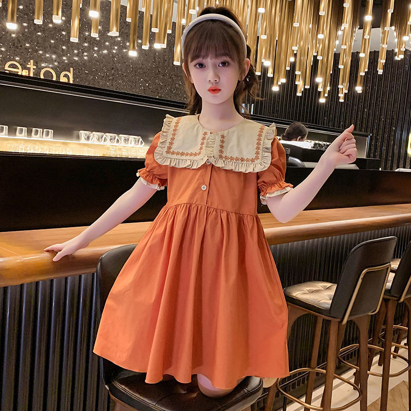 儿童洋气连衣裙夏装新款女大童网红时髦短袖翻领女孩公主裙子