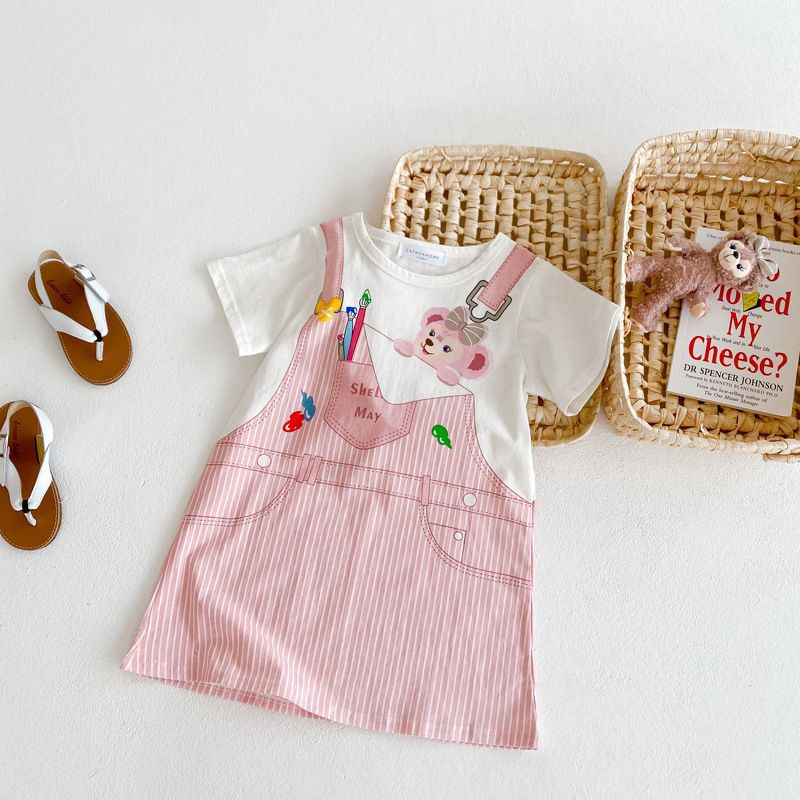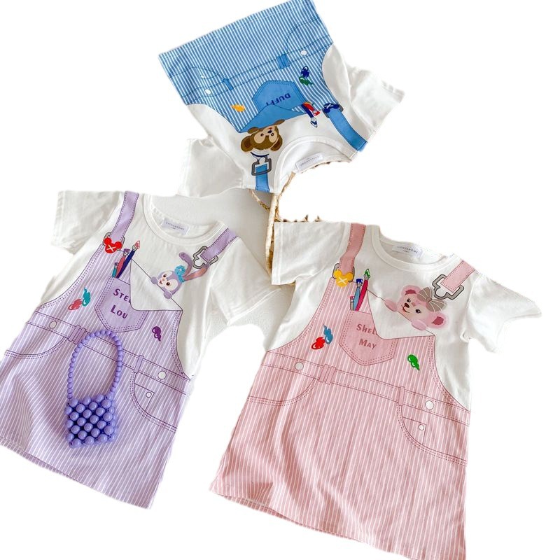 夏季新款时尚洋气可爱卡通印花假两件套背带连衣裙女宝宝中小童潮