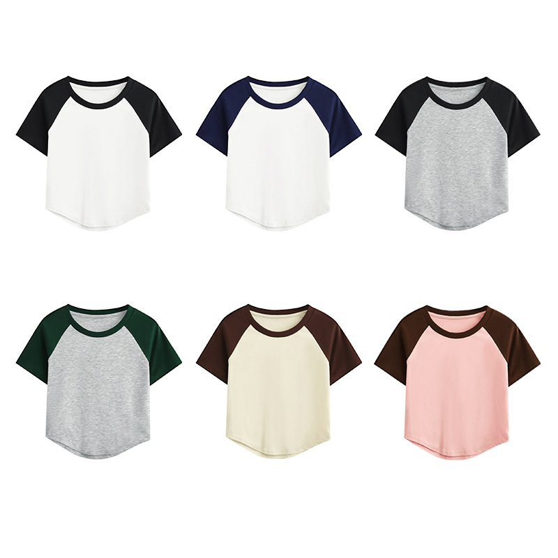 A09#( 40支奥代尔拉架)180克撞色双拼短款光版T恤跨境TEMU希音