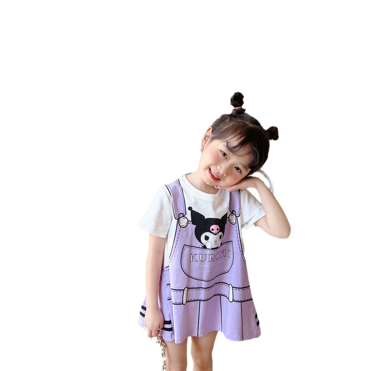 春秋季新款儿童女宝宝中小童卡通印花假两件连衣裙时尚洋气潮